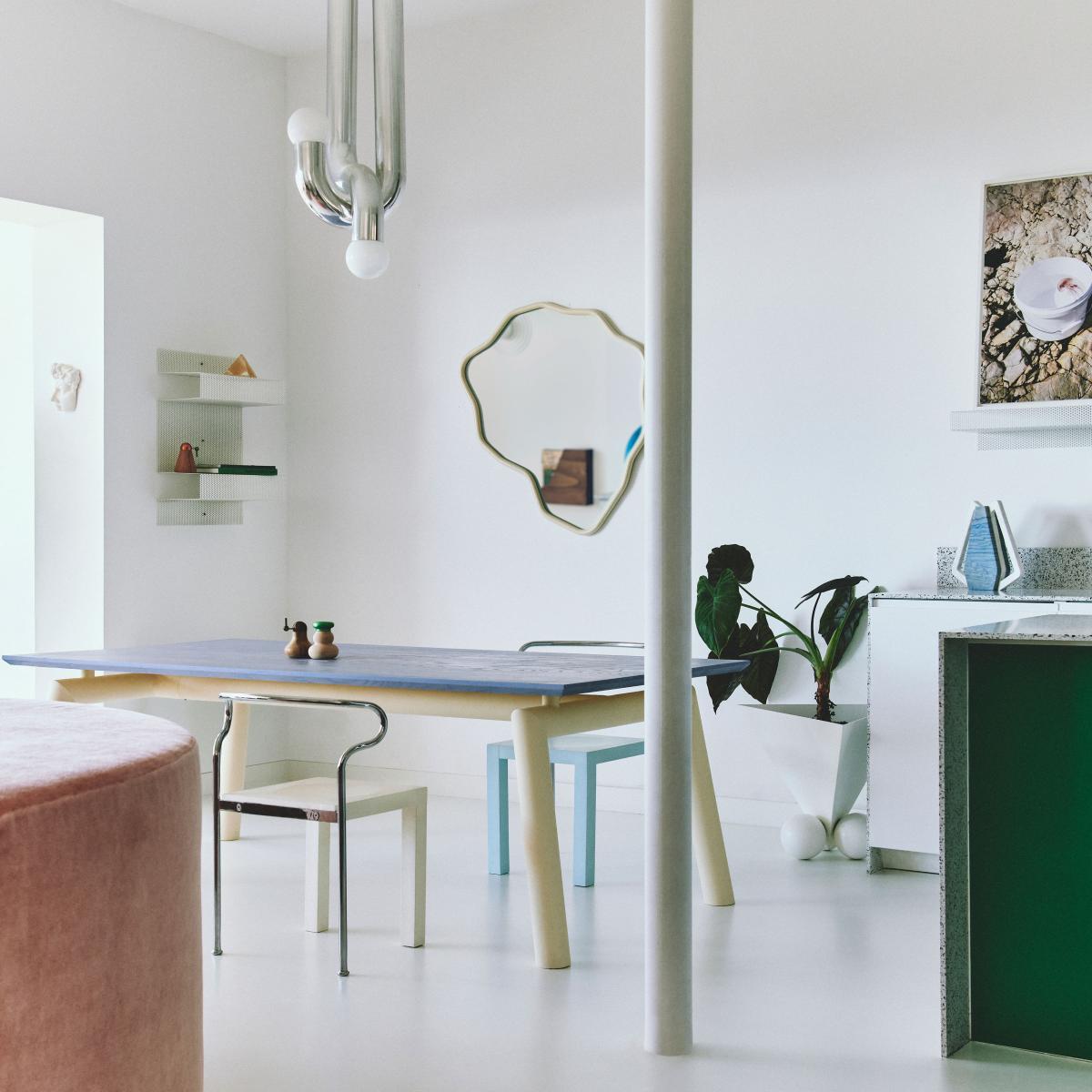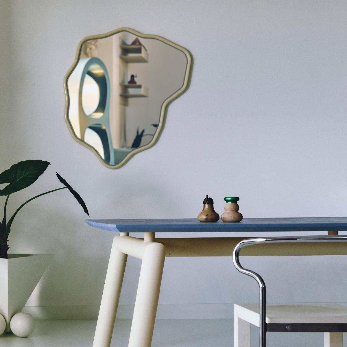 Avant-garde contemporary design… Created by young French designer Thomas Defour, this undulating mirror borrows from the fundamental joy and freedom of 80s design. Open to aesthetic, formal experimentation, Thomas Defour attaches great importance to the curve and to design, which he explores with new tools for each new project. Thomas Defour created the Magaud mirror with curved tube – a recurring element of industrial design – but giving it a more organic, abstract form. Bent by the designer, the lacquered steel tube follows a curved line which gradually emerges through the use of the tool and reveals a silhouette with generous, random shapes. Each mirror is a unique piece handcrafted in France. Bold and poetic, the Magaud mirror dresses the wall space with originality. Thomas Defour: “This era is very inspiring for our generation. It’s a period during which manufacturers followed the radical ideas of young designers. This resulted in more desirable objects, not just functional ones. It’s this way of producing unusual but rational forms that drives me. ‘’ Halfway between sculpture and craftsmanship, Thomas Defour's technique has developed in a fusion of two methods, visual and applied, based around solar influences. French designer 13. Desserts approaches design from a radical perspective, seeking balance between artistic freedom, mass production and "collectability". Giving pride of place to experimentation, this emerging design label explores new production avenues combining industrial processes and artisanal know-how. Uninhibited by the codes and trends that govern the market, the young guard of French design expresses itself freely, offering a selection of radically unique pieces.