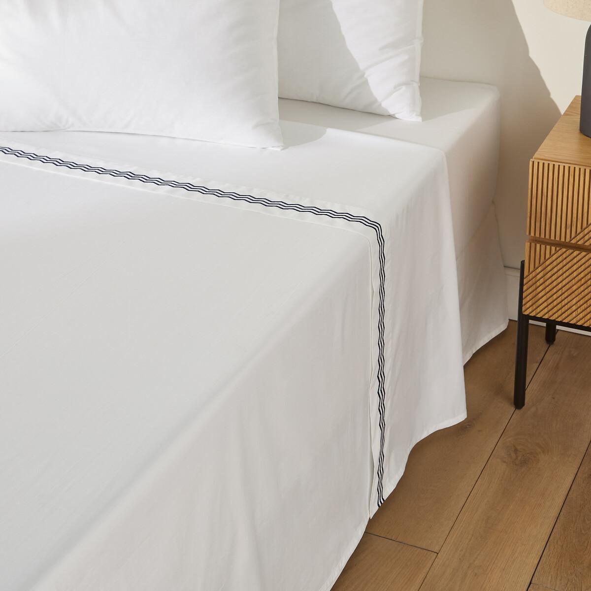 Cotton percale and contrasting geometric embroidery, in a chic and contemporary universe... Magda is a creation of our designers at La Redoute Intérieurs. The cotton percale offers a pleasant feeling of freshness and lightness. Its tight weave makes it particularly soft for premium comfort. A matte and smooth material that will soften over time. Product Details • 100% cotton, 115g/m2 • Cotton percale • 200 thread count: The higher the thread count, the higher the quality of the weave • Contrasting embroidery Care Advice • Machine washable at 60°C • By washing your laundry at 40°C instead of 60°C, you limit energy consumption. Dimensions • 240 x 290cm: King • 270 x 290cm: King • OEKO-TEX® Standard 100. Standard 100 certification by OEKO-TEX® tests textile products for harmful substances via an independent, international label.