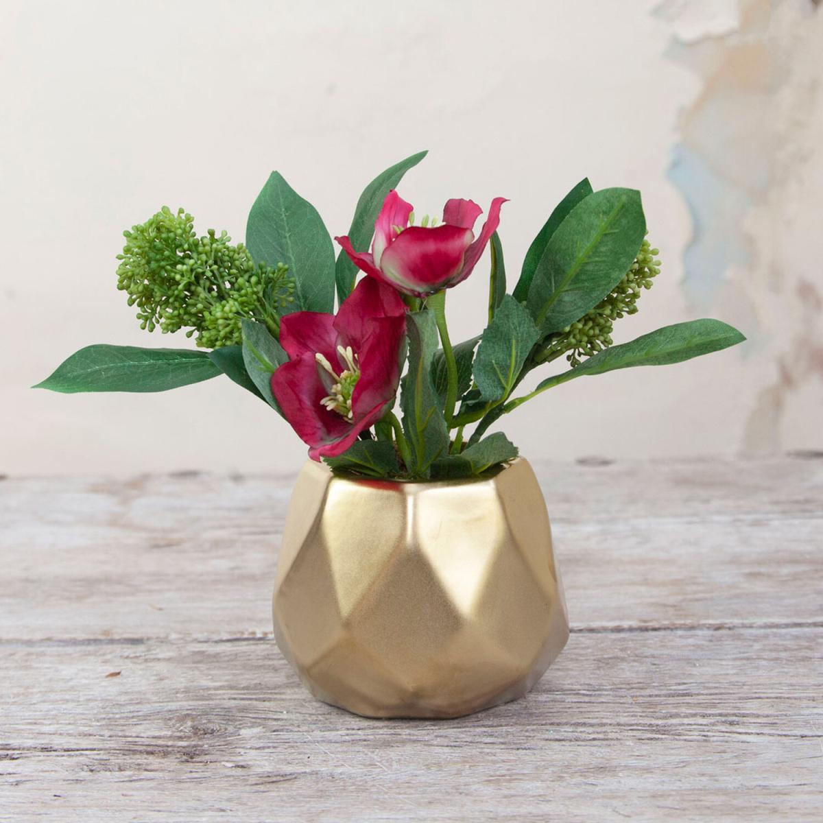 I love this bunch of magenta hellebores paired with skimmia berries; they bring a fresh, festive feel without the maintenance of fresh flowers. The ceramic vessel adds a classic touch, making it versatile for various décor styles. It works particularly well in contemporary or minimalist interiors, where its pop of colour can brighten neutral palettes. For styling tips, I’d suggest placing it on a side table, mantel, or as a centrepiece to add seasonal charm. It’s also quite practical-ideal for spaces with little natural light or pet-friendly homes, as it won’t wilt or require watering. Overall, it’s a smart, long-lasting way to elevate your holiday décor.