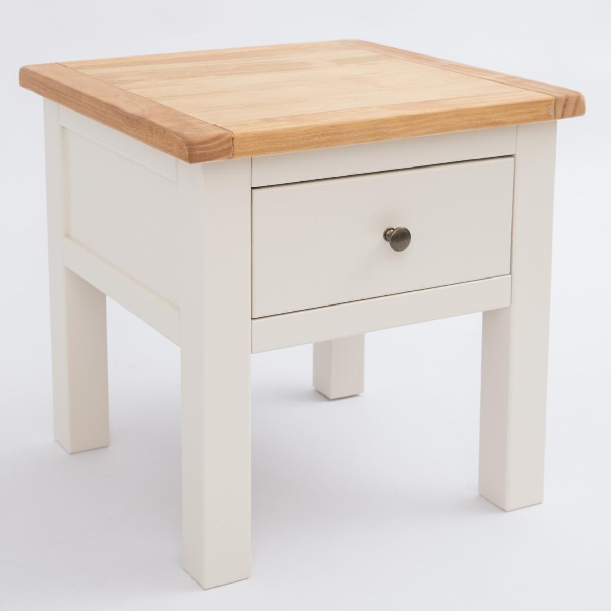 Our Maggiori collection has a simple but pleasing design and is produced by our skilled craftsmen to the highest standards using responsibly sourced wood and veneers. All tops are made using a combination of solid pine wood and veneers and are carefully hand waxed giving it a great look. The body is finished with a high quality eco-friendly water base paint in an off-white colour. This 1 drawer lamp table is perfect as a centrepiece for your room. The top has plenty of space for TV remotes, magazines, your tablet or your favourite scented candle. It is also perfect for drinks and snacks, but don't forget to use a coaster to protect the finish. The drawer allows space for those other items you need close to hand to be stored conveniently but discretely. These attributes combined with a simple construction for easy assembly makes it a great value product to be taken home today.