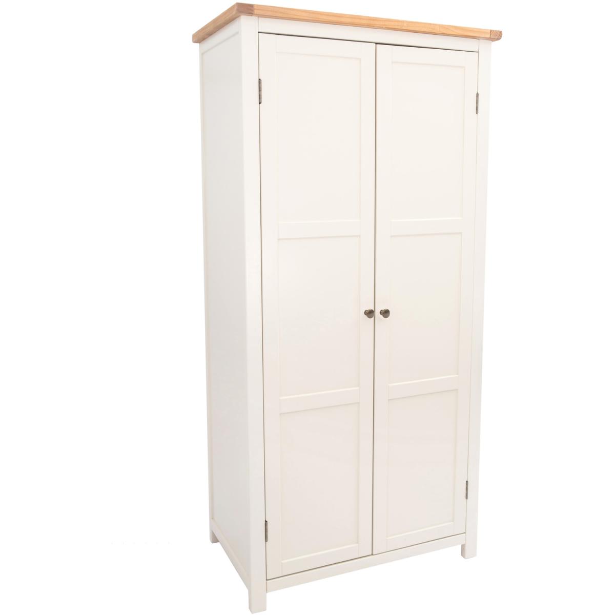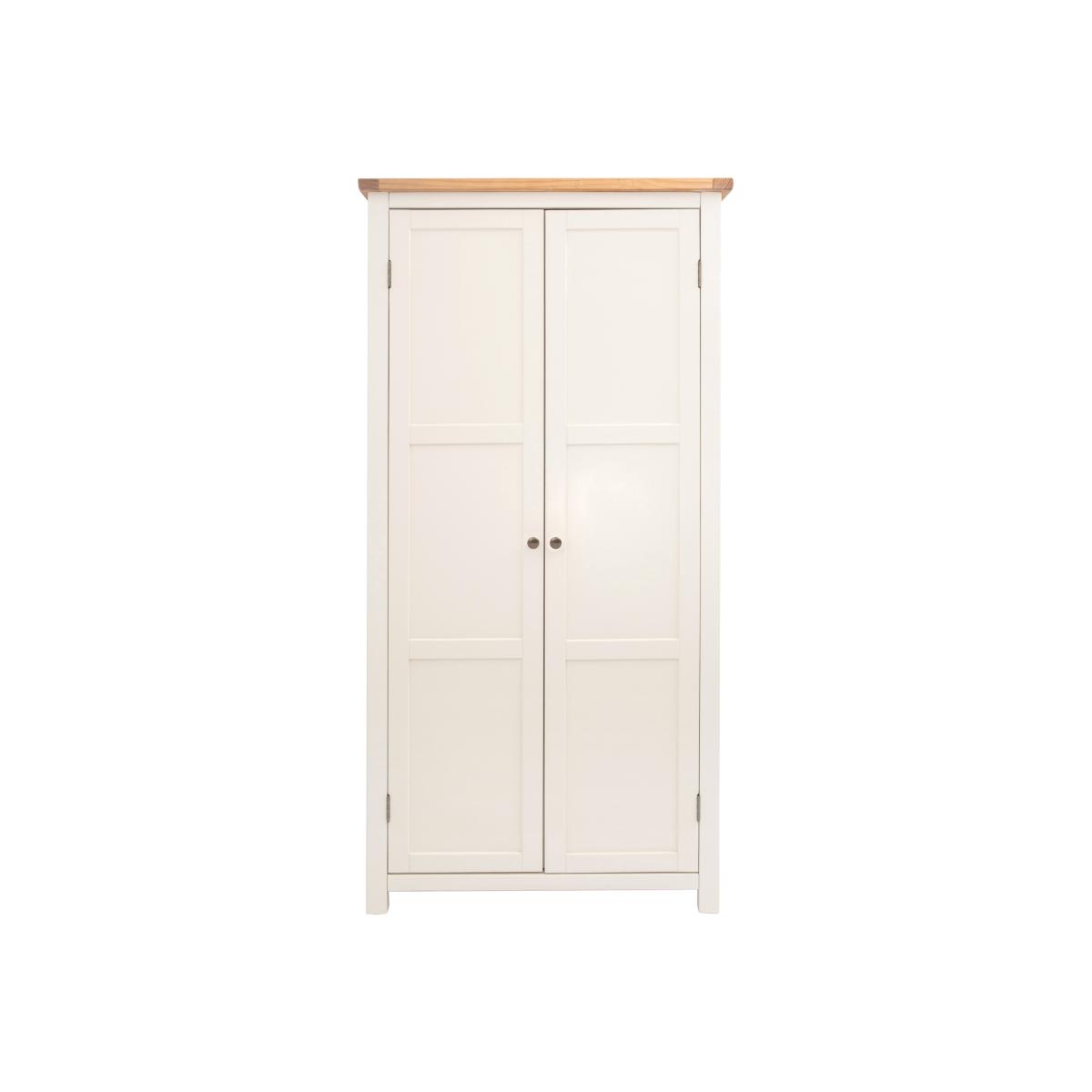 Our Maggiori collection has a simple but pleasing design and is produced by our skilled craftsmen to the highest standards using responsibly sourced wood and veneers. All tops are made using a combination of solid pine wood and veneers and carefully hand waxed, giving them a great look. The body is finished with high-quality eco-friendly water base paint in an off-white colour. This two-door wardrobe can house your clothes in a variety of ways. The rail at the top allows you to hang your clothes freely without creasing, there is a shelf in the lower part of the robe but this can be removed if you wish to have full hanging space. If you keep the shelf in it creates a separate storage area below for folded clothes or shoes or indeed for spare bedding, also you can use the shelf itself as further storage. These attributes combined with a simple construction for easy assembly make it a great value product to be taken home today.