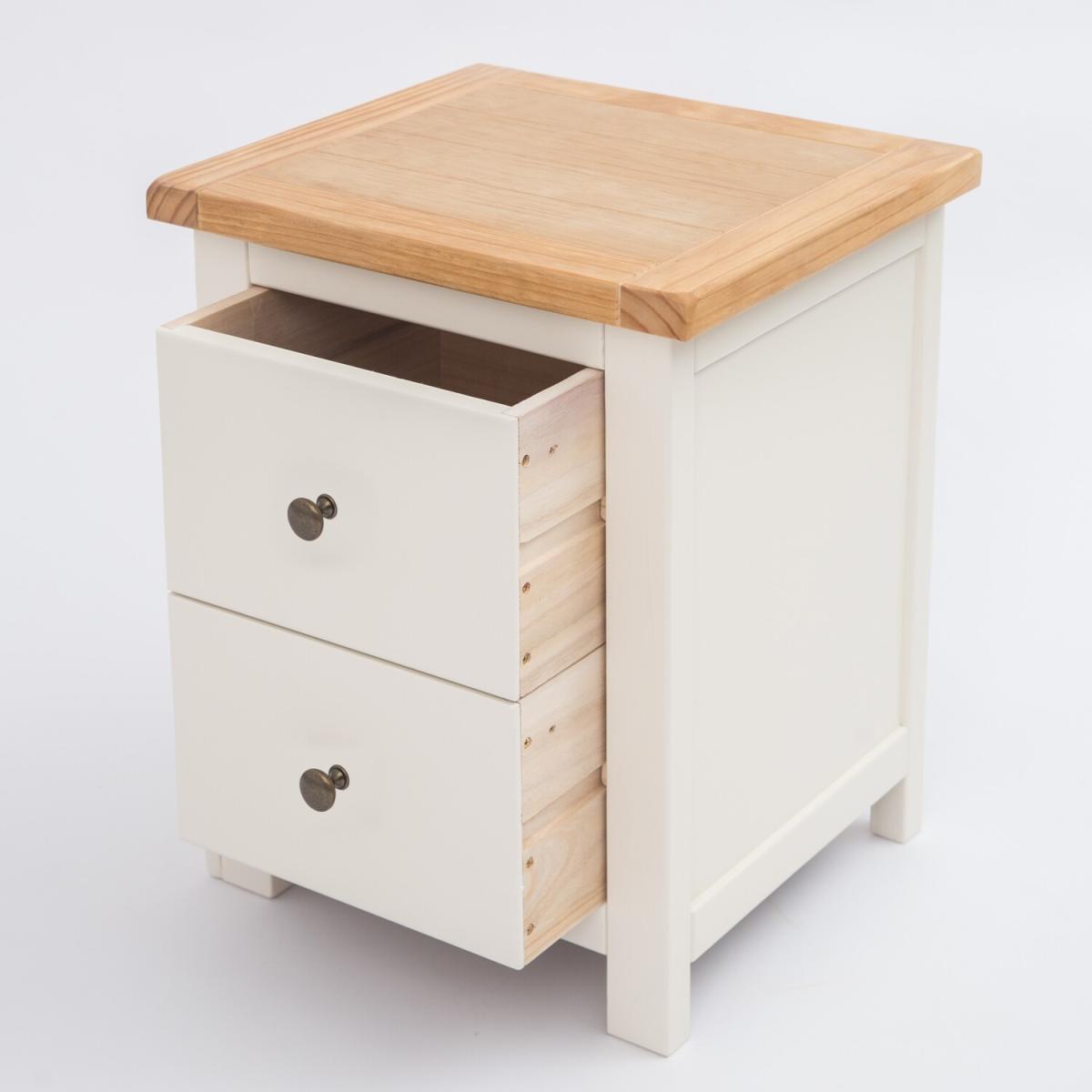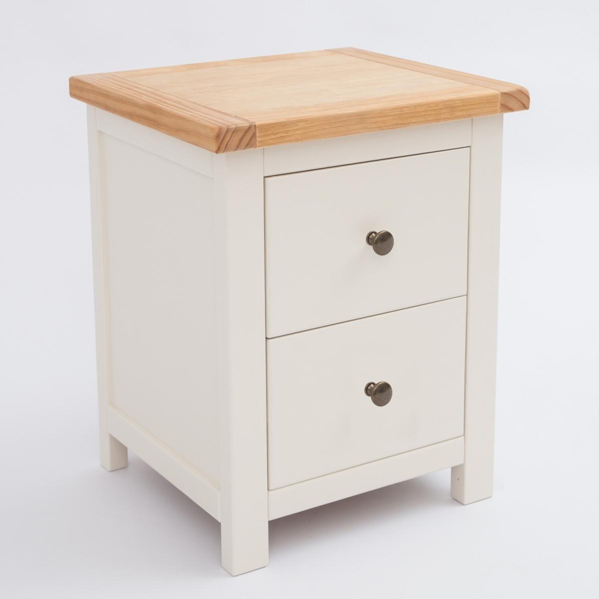 Our Maggiori collection has a simple but pleasing design and is produced by our skilled craftsmen to the highest standards using responsibly sourced wood and veneers. All tops are made using a combination of solid pine wood and veneers and are carefully hand-waxed giving them a great look. The body is finished with high-quality eco-friendly water-base paint in an off-white colour. This generous two-drawer bedside has deep drawers which allow all your requirements to be kept close to the bed and within easy reach, it also allows you to keep the top clutter-free and ready for your morning cuppa. These attributes combined with a simple construction for easy assembly make it a great value product to be taken home today.