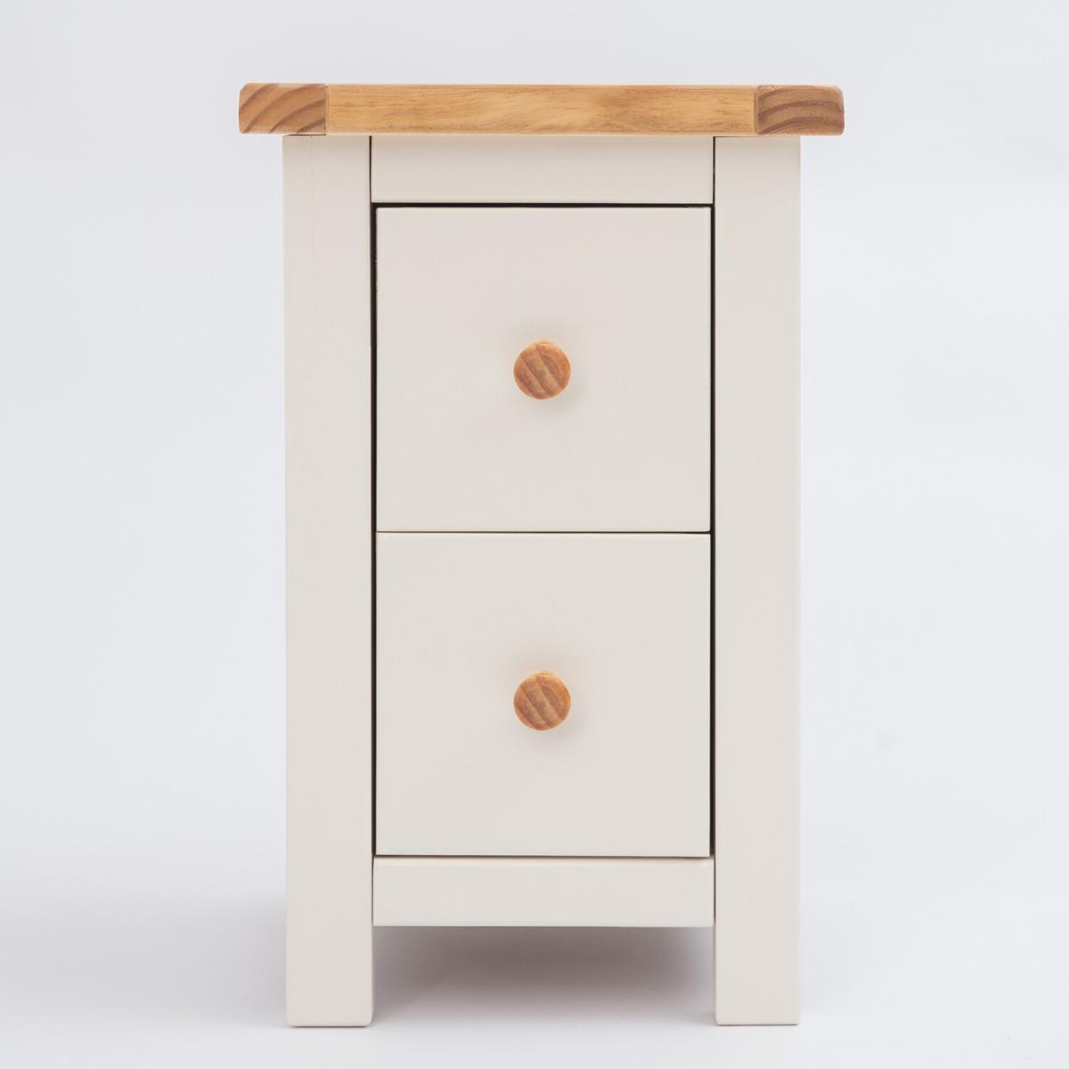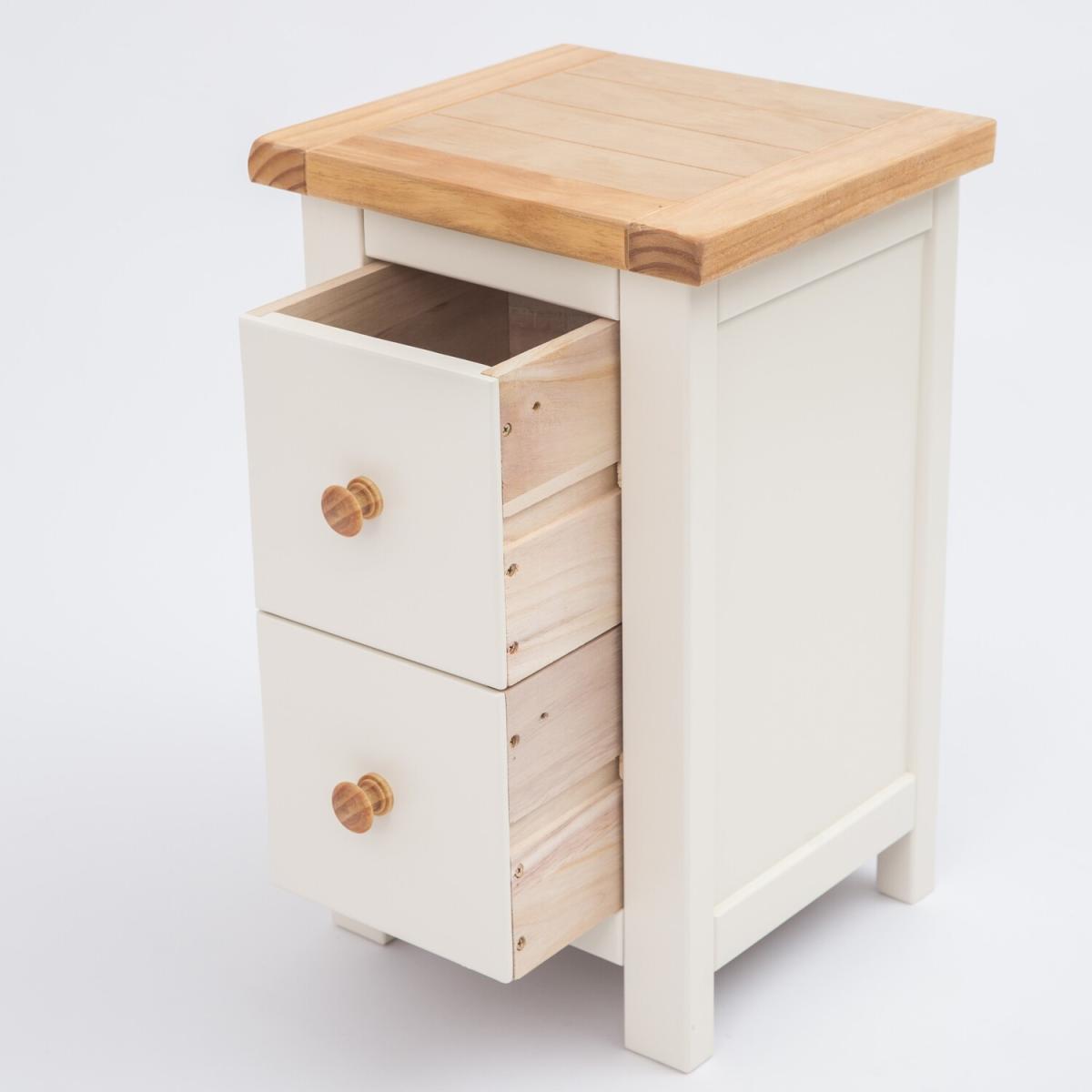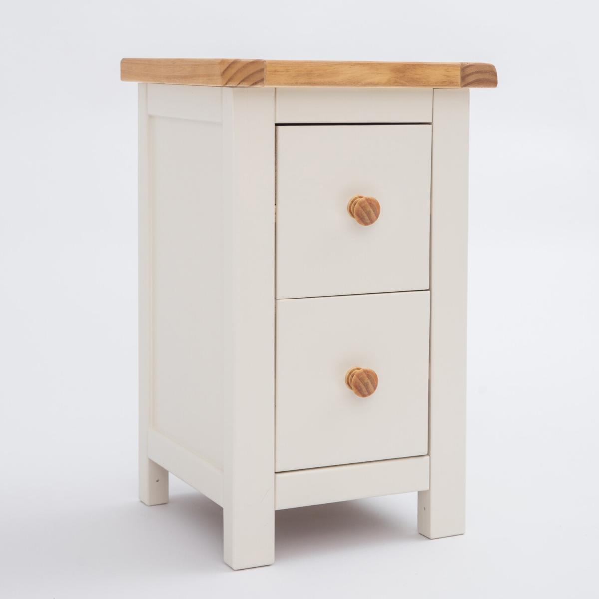 Our Maggiori collection has a simple but pleasing design and is produced by our skilled craftsmen to the highest standards using responsibly sourced wood and veneers. All tops are made using a combination of solid pine wood and veneers and are carefully hand-waxed giving them a great look. The body is finished with high-quality eco-friendly water-base paint in an off-white colour. This petite bedside is perfect for any bedroom where space is at a premium. The two drawers have plenty of space to take your nighttime essentials and keep them close to hand, this allows the top to be free for your alarm or mobile phone. These attributes combined with a simple construction for easy assembly make it a great value product to be taken home today.
