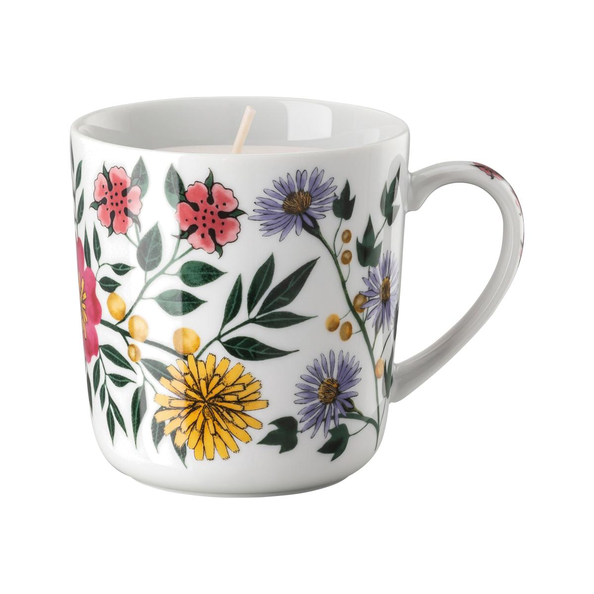 The Magic Garden Blossom candle in mug from Rosenthal is a gorgeous and colourful addition to your home. Designed by Sacha Walckhoff, the gorgeous mug bears a striking floral motif in a vivid colour palette that brings a touch of radiant joy to your dining table. The mug itself has been meticulously crafted — the vibrant hues have been fused into the porcelain glaze at a temperature of 1000° C to ensure the pattern is completely safe from scuff and scratches. The inner wax candle provides an even and consistent burn to render it a luminescent centrepiece anywhere you place it. The Magic Garden series consists of three collections: Black Seeds, Foliage and Blossom, each symbolizing the spectacular transition of the plant, from seed to seedling to flower. Combine the different collections alongside each other to create a vivid and sophisticated table setting.