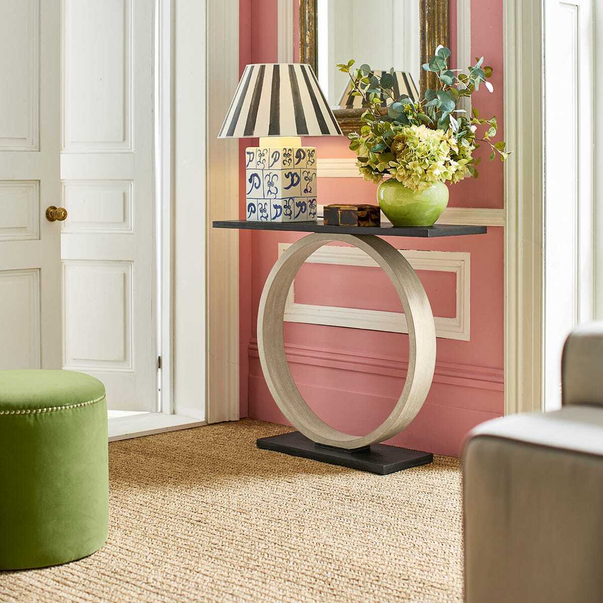 If you're looking for a signature piece, our Magicus Console Table fits the bill. A well-balanced feat of great design, a sculptural wooden circle is gently sandwiched between two black-painted wooden plinths to create this elegant form. Magicus Console Table- Dark Grey