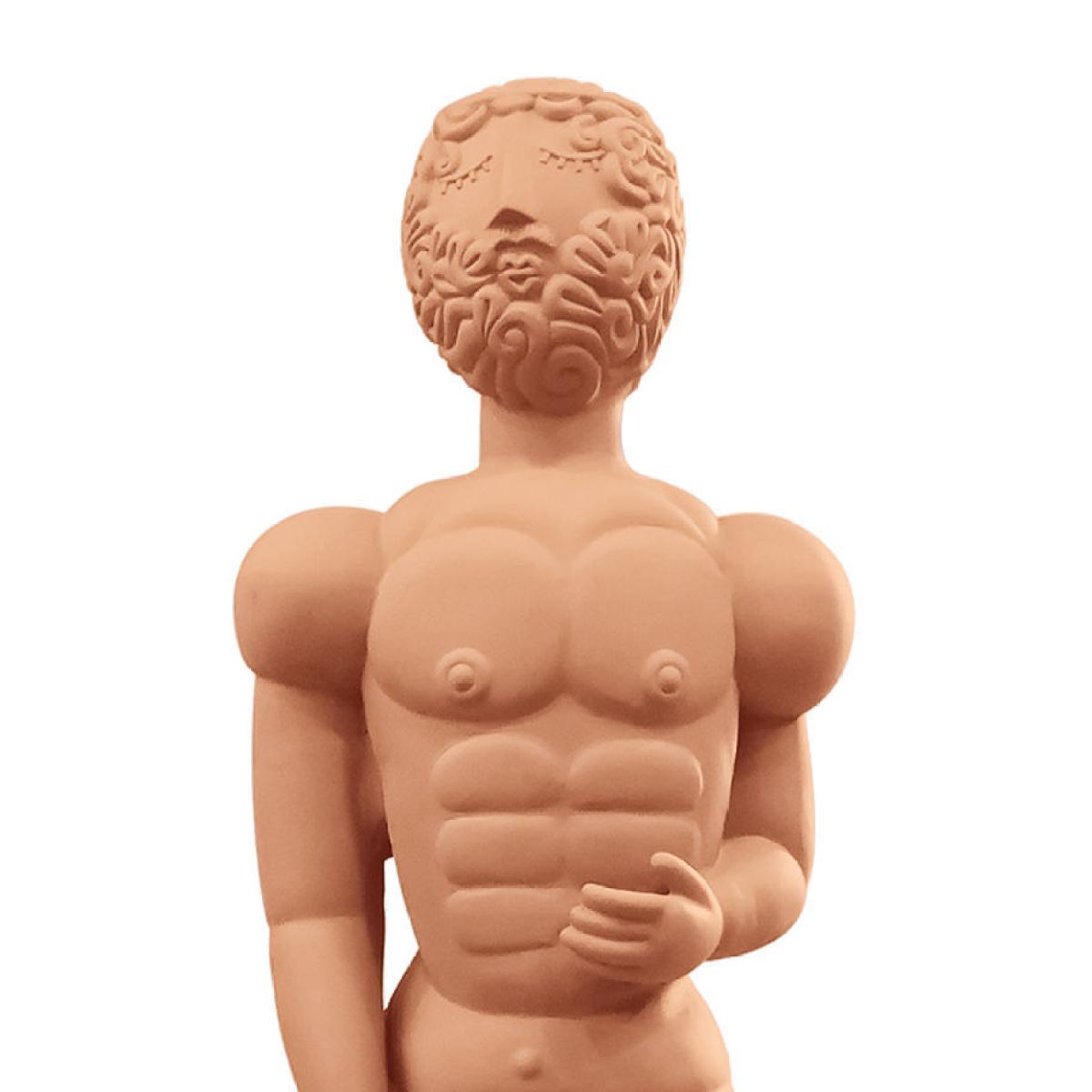 Designed by Antonio Aricò, the ''Magna Graecia'' collection of terracotta objects revisits in a cartoon style the Greek relics of southern Italy. Imbued with Mediterranean culture, Antonio Aricò worked around the world before returning to Calabria where he grew up. Greek culture is very present in this region full of statues and objects. In some villages, a derivative of Greek is still spoken, more than 2500 years after occupation... With ''Magna Graecia'', Antonio Aricò interprets this Greek heritage using terracotta, all with a fun, contemporary feel. ''Magna Graecia'' reflects an image that’s more Mediterranean than Calabrian. It refers to the Great Greece of Antiquity, as well as the Roman emperors, to Sicilian traditions such as the Testa di Moro.... To create the many pieces in this collection, the designer accumulated many drawings which he transcribed in volume using 3D software. The features of these drawings were subsequently replicated identically in terracotta.... Antonio Aricò: “This is the first time in my career as a designer that the final pieces are exactly what I designed. We find in it modernity, but also the purity of traditional manufacturing. Above all, I didn't want to make replicas, souvenirs. These pieces are contemporary and designed in a fun way, namely that of Seletti.’’... The pieces are adorned with familiar motifs of Doric and Ionic columns, wave motifs as well as erotic motifs such as those one discovers, as a child, on ancient vases. Among the key pieces in the collection, many busts and statues sculpted in reference to Antiquity inspired by the "Bronzes of Riace", statues of warriors from the 5th century BC, still surrounded by many mysteries. The designer created feminine figures: women and men are thus mixed, as in Greek culture, in a certain gender fluidity.... Regarding the choice of terracotta, the designer explains: “I grew up in a carpentry workshop and I love wood, which is my favourite material. Terracotta is the same colour but more expressive in its plasticity. I like the "nude" aspect of this material, which gives it purity but not white, but warmer...... “Magna Graecia” tells an ancient story which, through Seletti, finds its own way of entering contemporary everyday life with irony and grace.