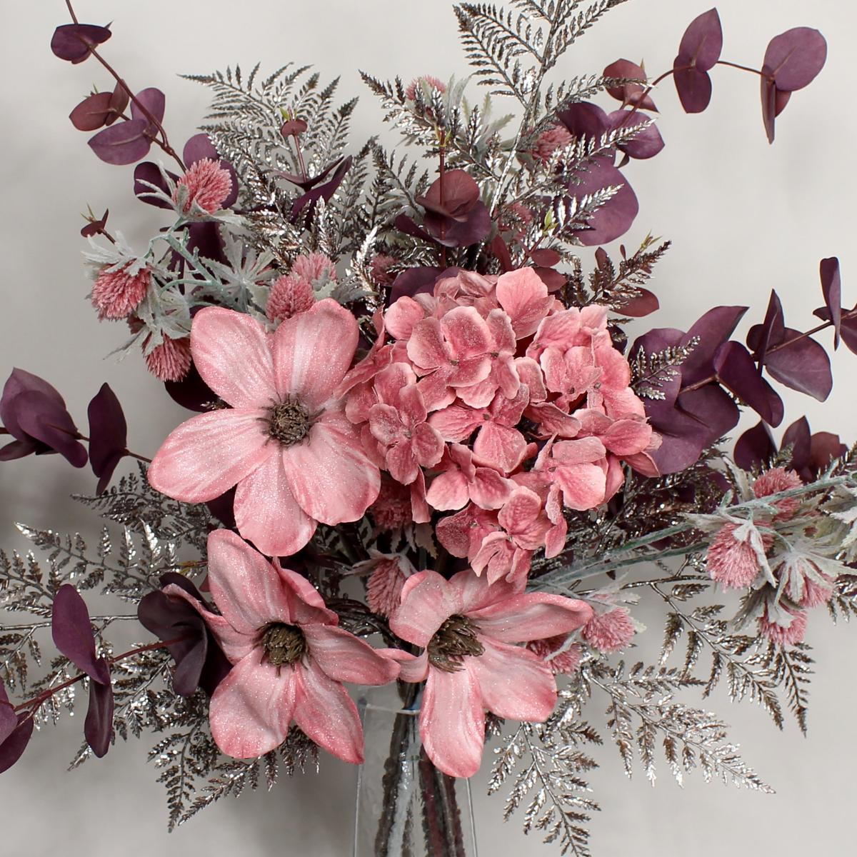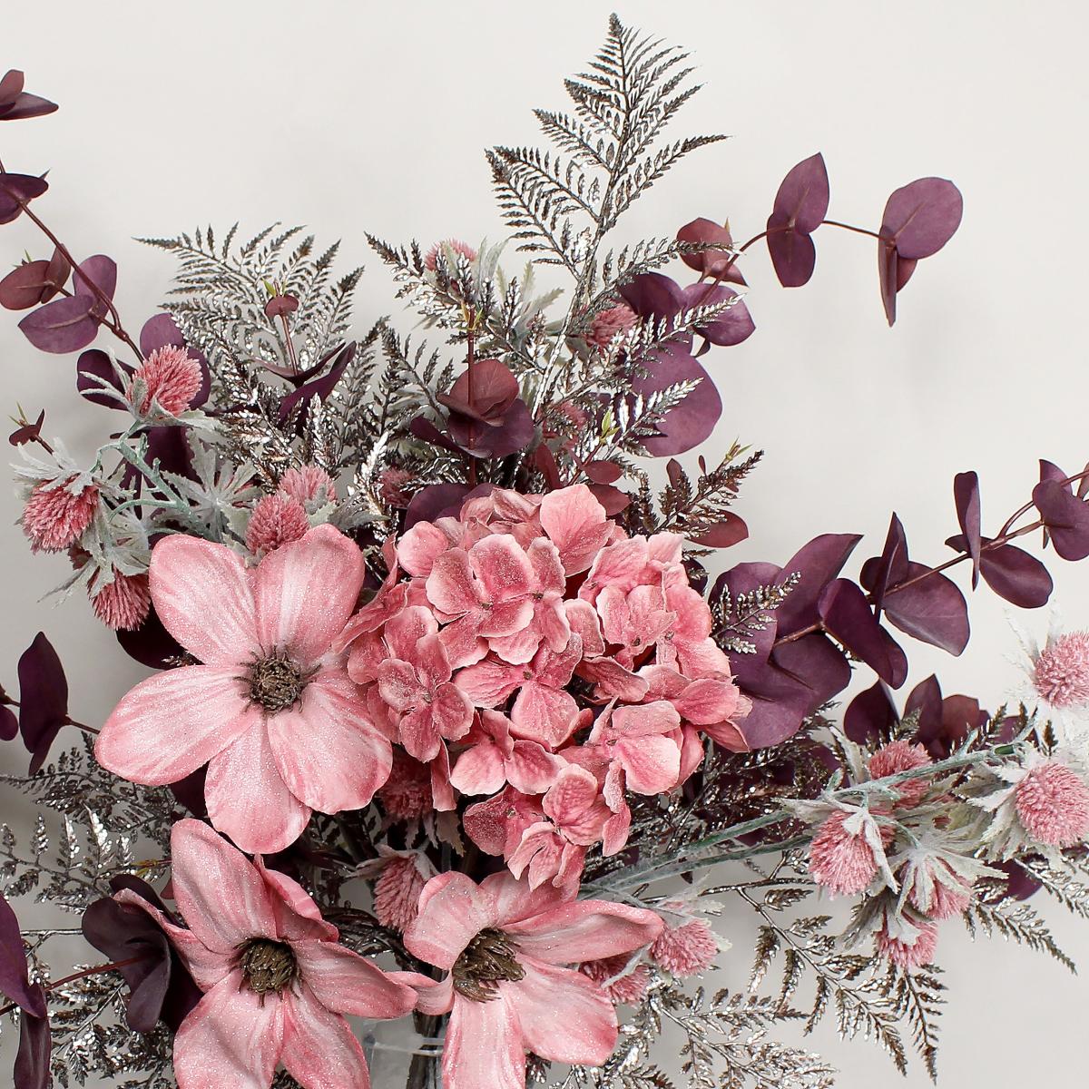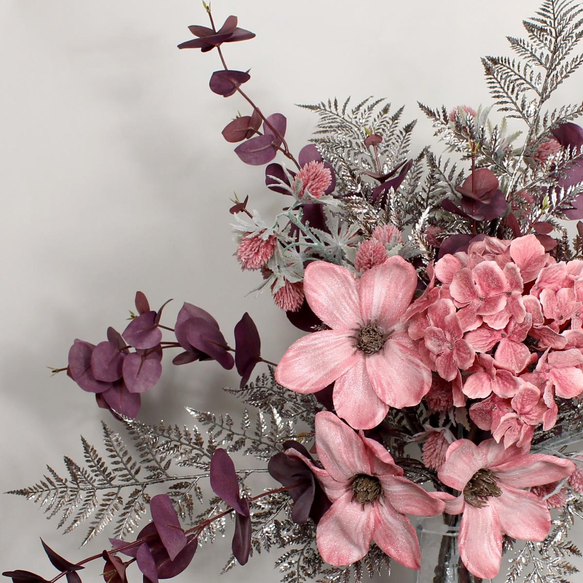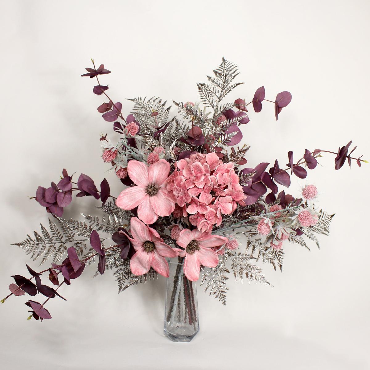 I love this bouquet because it combines softness with a modern edge, making it incredibly versatile for various interiors. The muted purple tones paired with blush pinks create a colour palette that works well in both contemporary and traditional spaces, especially in muted or pastel-themed rooms. It’s a practical piece that requires no watering or sunlight, making it ideal for adding instant colour to sunny window sills, side tables, or shelves without the maintenance of real flowers. For styling tips, consider grouping it with other soft-hued or metallic accents for a cohesive look, or place it in a clear glass vase like shown for a fresh, airy vibe that’s perfect for creating a relaxed yet sophisticated atmosphere.