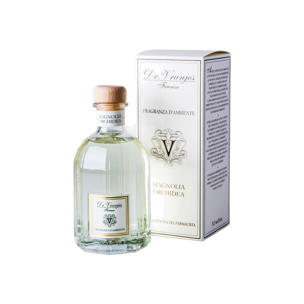 This Magnolia Orchidea Diffuser by renowned perfumer, Dr. Vranjes, has a delicately balanced base notes of orchid, blended to create a light, subtle fragrance reminiscent of spring and summer. A light, subtle fragrance reminiscent of spring and summer, this fragrance blends graceful notes of mimosa with the sweet, elegant essence of magnolia before the warm base notes of Orchid. Based in a laboratory in Florence, this chemist and artisan perfumer constructs refreshing fragrances using age-old, traditional techniques. Inspired by scents of the Mediterranean, Dr. Vranjes combines pure and natural ingredients with the world's finest essential oils to generate scents that rejuvenate and purify.