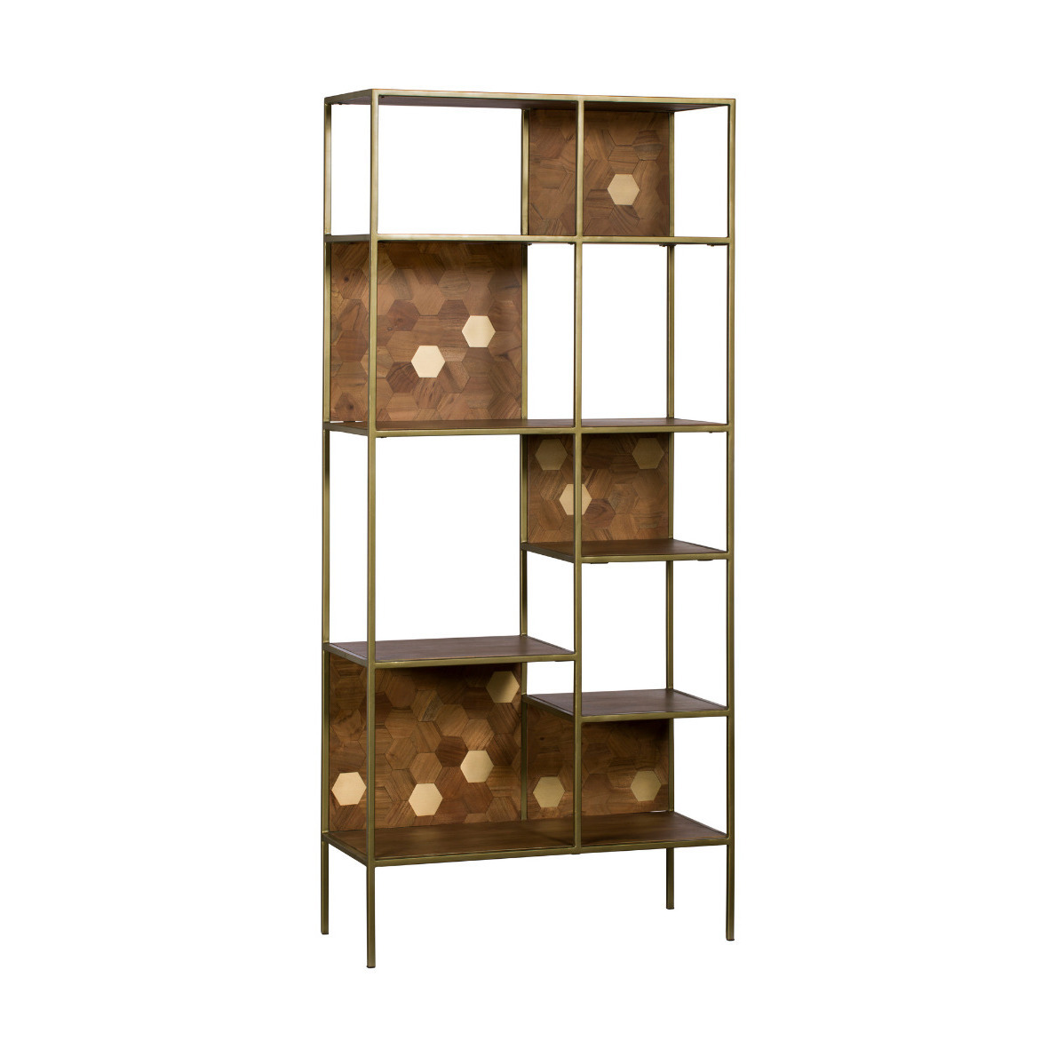 Make a grand statement with the stunning Magnus bookcase. Embracing geometric shapes and metallic detailing to create a stylishly sophisticated look with plenty of glamour.