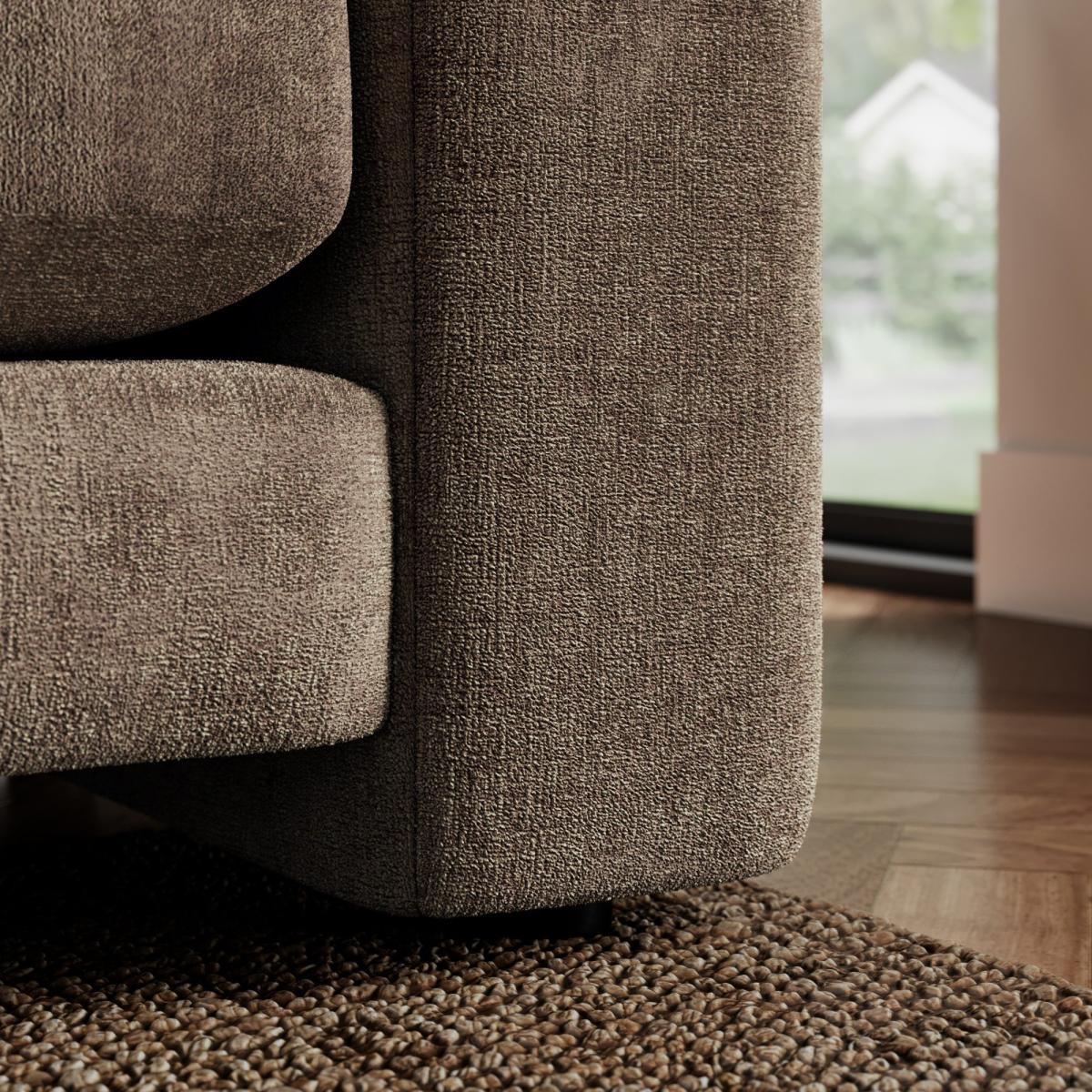 I really like this sofa’s soft textured chenille finish, which adds a cosy yet contemporary touch to any living space. Its dark natural hue makes it versatile and easy to pair with a range of colour schemes, from neutral palettes to more vibrant accents. It works particularly well in relaxed, modern interiors, especially those with a mix of textures like wood, metal, or woven textiles. For styling tips, consider adding throw cushions in contrasting fabrics or colours to create visual interest, and complement it with a plush rug to enhance the cosy vibe. Overall, it’s a practical choice for a family or lounge area, combining comfort with understated style.
