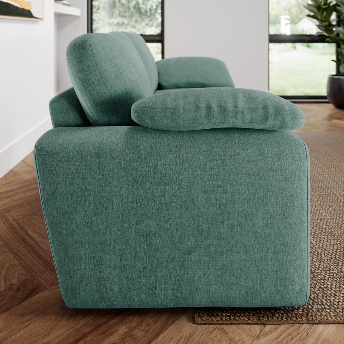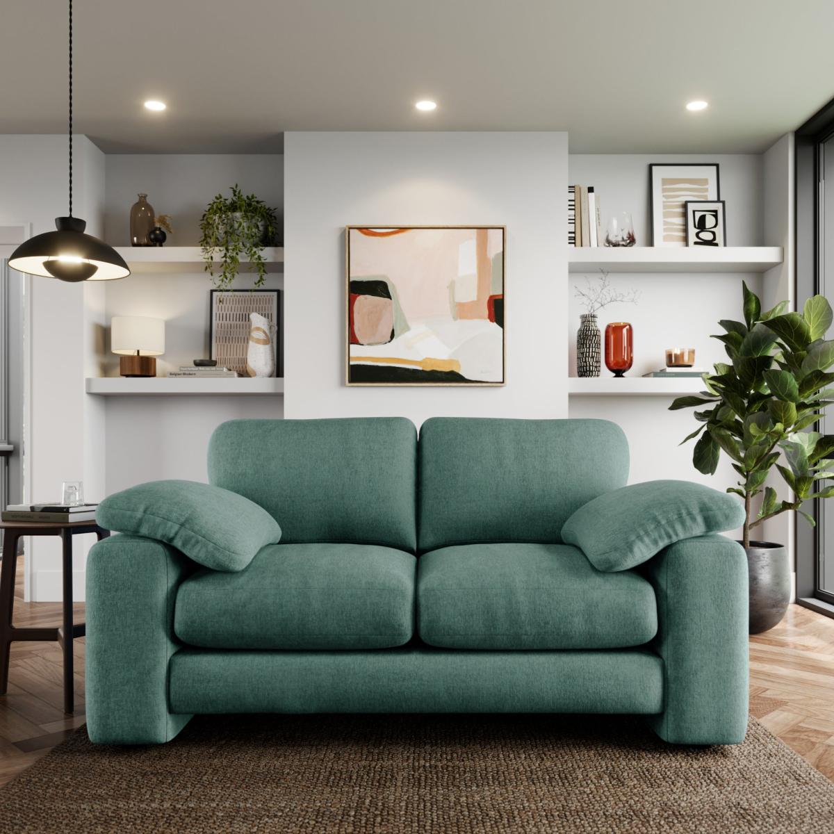 I love the Magnus Vintage two-seater for its versatile vintage chenille fabric in a refreshing aqua hue, which adds both colour and texture to a space. It works particularly well in eclectic, retro, or contemporary interiors where a pop of colour can complement neutrals or layered tones. Styling tips include pairing it with neutral cushions or throws to let the fabric and colour stand out, or contrasting it with warm wood tones and metallic accents for a balanced, inviting look. Its cosy, plush feel makes it ideal for smaller living rooms or cosy corners, and its vintage aesthetic brings a touch of charm without feeling overly formal or traditional.