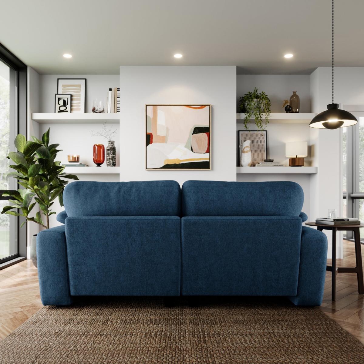 I love this vintage chenille corner sofa for its inviting texture and versatile navy colour, which anchors a range of interior styles. It works particularly well in modern, minimalist, or classic spaces, adding a cosy yet sophisticated touch. For styling, consider pairing it with neutral or patterned cushions to create visual interest, and keep accessories like throws simple and understated to let the fabric speak for itself. To maintain its plush appearance, opt for a dark or textured rug underneath-as shown here-and avoid clutter around the sofa to keep the look clean and inviting. Its generous shape makes it ideal for family rooms or open-plan living spaces where comfort and practicality are key.