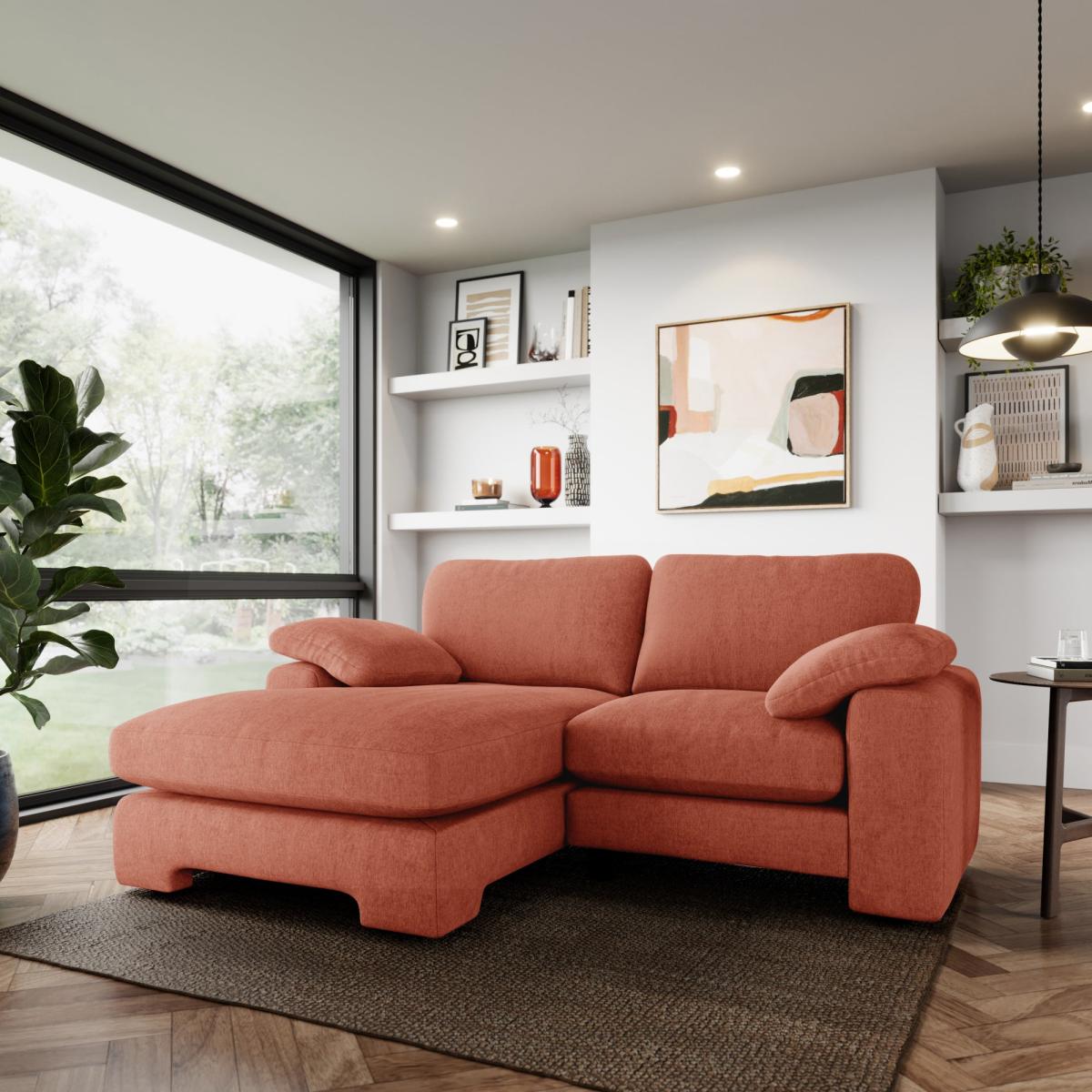 Magnus Vintage Soft Chenille Corner Chaise Sofa Vintage Chenille Terracotta