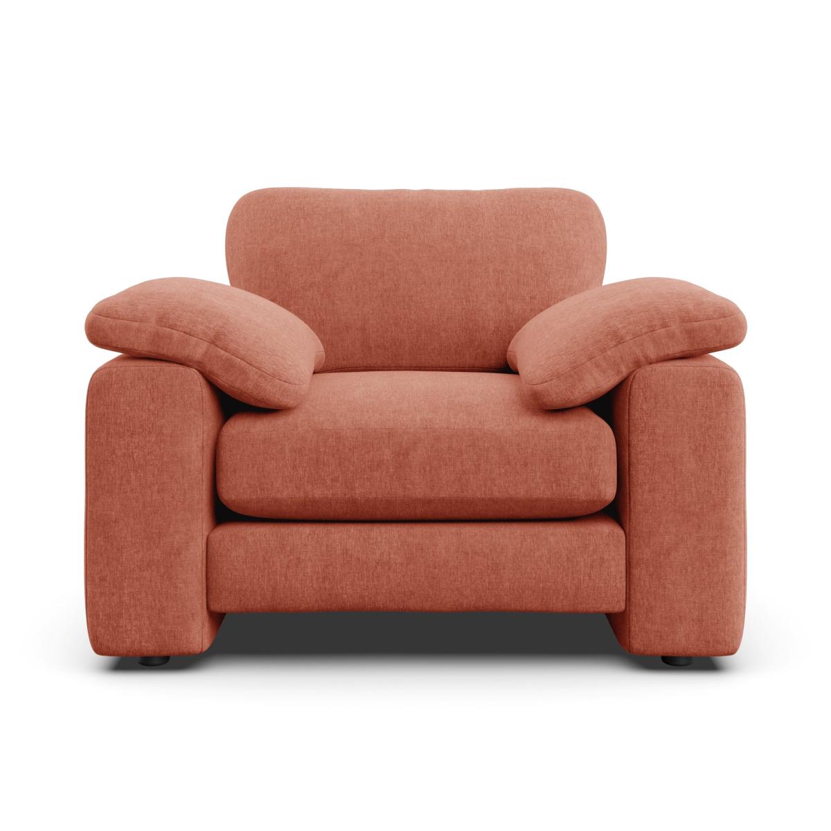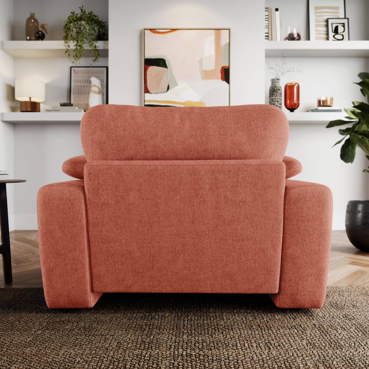 I love this vintage-style snuggle sofa because of its inviting chenille fabric and warm terracotta hue, which adds depth and a cosy feel to any space. It works particularly well in eclectic or contemporary interiors, where its plush detailing can be balanced with colourful cushions or modern artwork. For practical styling tips, pair it with neutral or earthy tones to keep the look grounded, and consider adding a textured throw to enhance its inviting appeal. It's ideal for small lounges or as a statement piece in a relaxed living area, offering comfort and character in equal measure.
