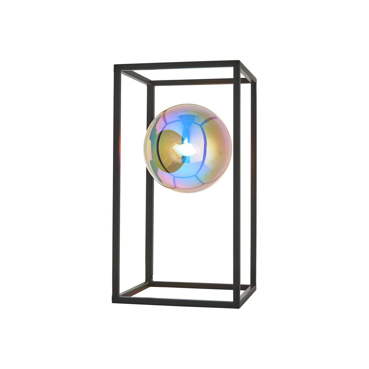 I love this table lamp for its contemporary yet versatile aesthetic. The open frame design makes it a great statement piece in modern or minimalist interiors, while the iridescent glass adds a touch of colour and texture that can soften a more industrial space. It works particularly well in living rooms, bedrooms, or even as an accent on a sideboard or console table. Styling tips include pairing it with neutral or monochromatic palettes to let the glass pop, or mixing it with other metallic accents for a cohesive look. Its adjustable, sculptural quality also makes it practical for creating ambient lighting - perfect for adding warmth and visual interest without overwhelming the space.