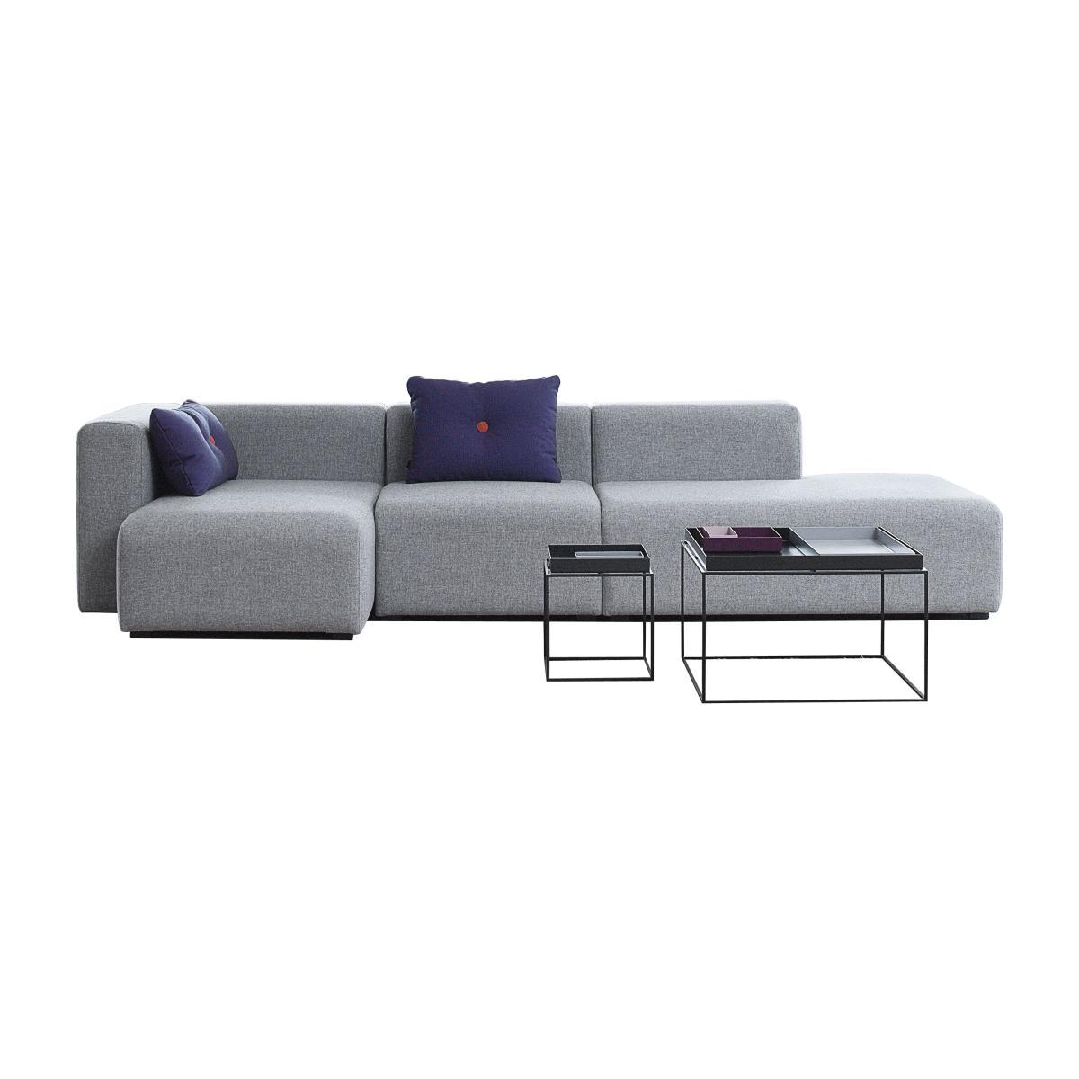 Luxury materials, highest quality requirements and exceptional finishes – these are features of Hay! This large sofa (W 302 cm) consists of three modules: a meridian with an armrest, a central module and a module without an armrest. These three modules are fixed together with metal linking components in order to achieve perfect stability. The meridian allows you to stretch out (seat D 105 cm) – ideal for moments of pure relaxation! Thanks to the large size of the Mags sofa, you can sit on it as you like; you can sit down and read, lie down and watch TV, play video games completely slumped. The cushions from springs and padding from polyurethane foam guarantee excellent and everlasting comfort of the seat. The clean and essential lines exalt the quality of the finish, a beautiful Kvadrat fabric made of pure virgin wool (70%) and viscose (30%). Mags measures: W 302 x D 127. 5 x H 66 cm (seat: D 105/74 x H 42 cm). The armrest is situated on your left side. The Mags collection includes a variety of modules; it is possible to buy other modules separately and complete your sofa – feel free to contact us!.