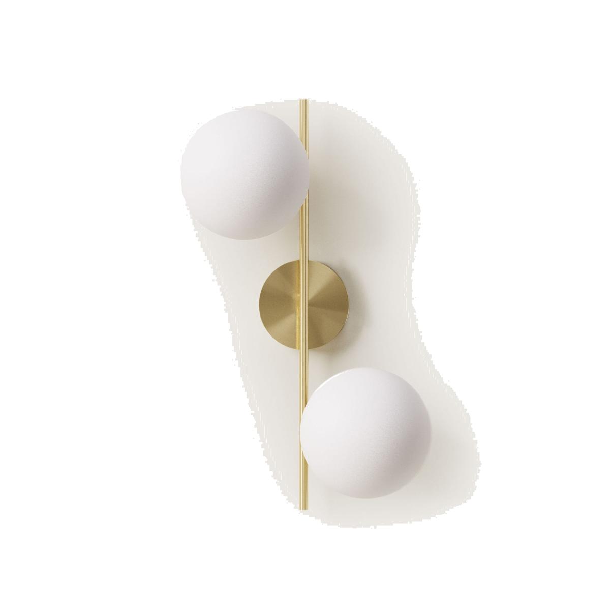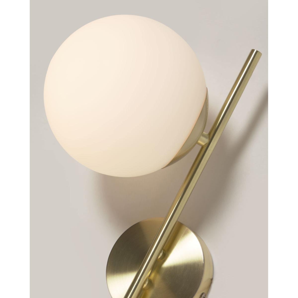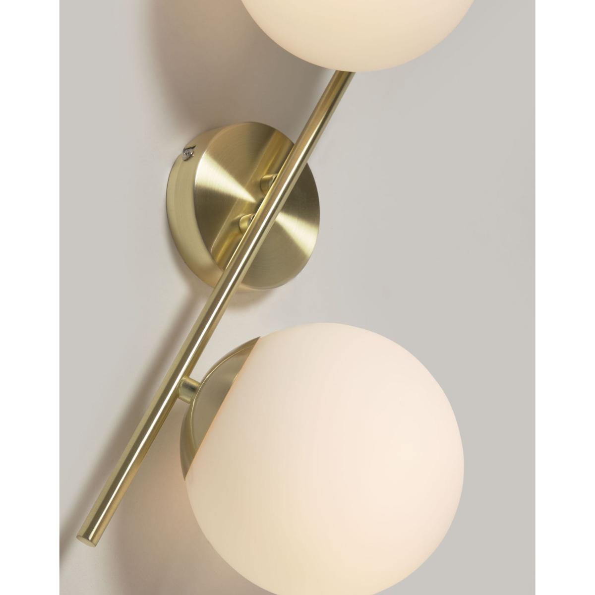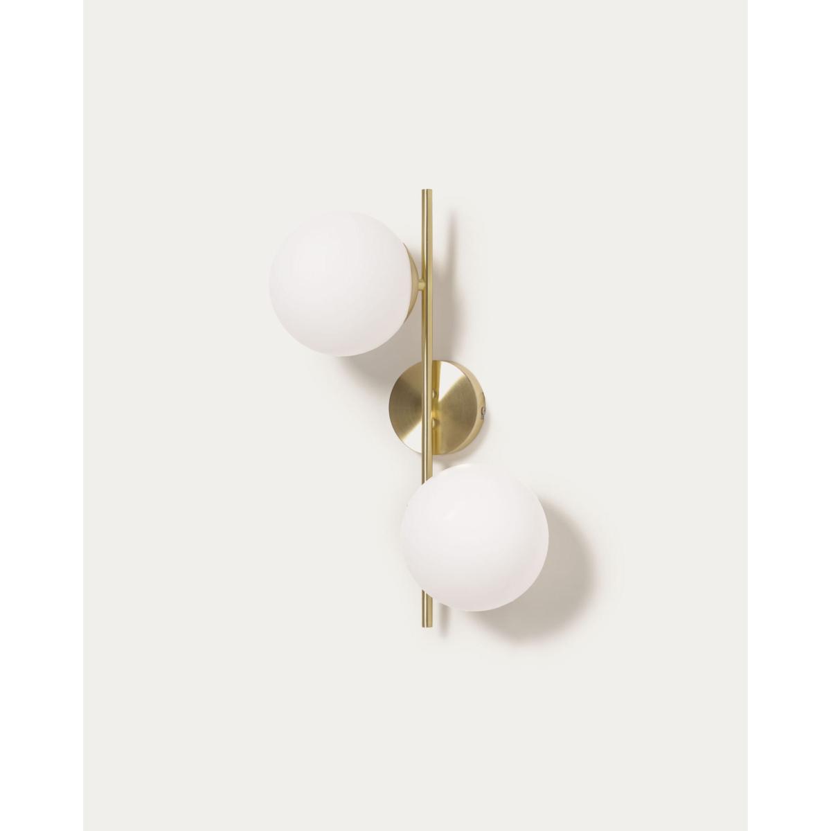 Mahala steel wall light with brass finish and two frosted glass spheres