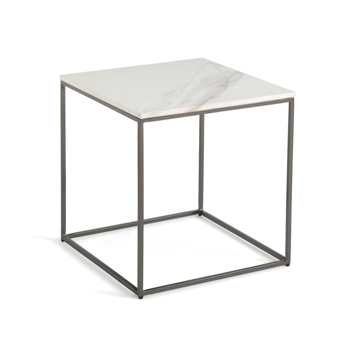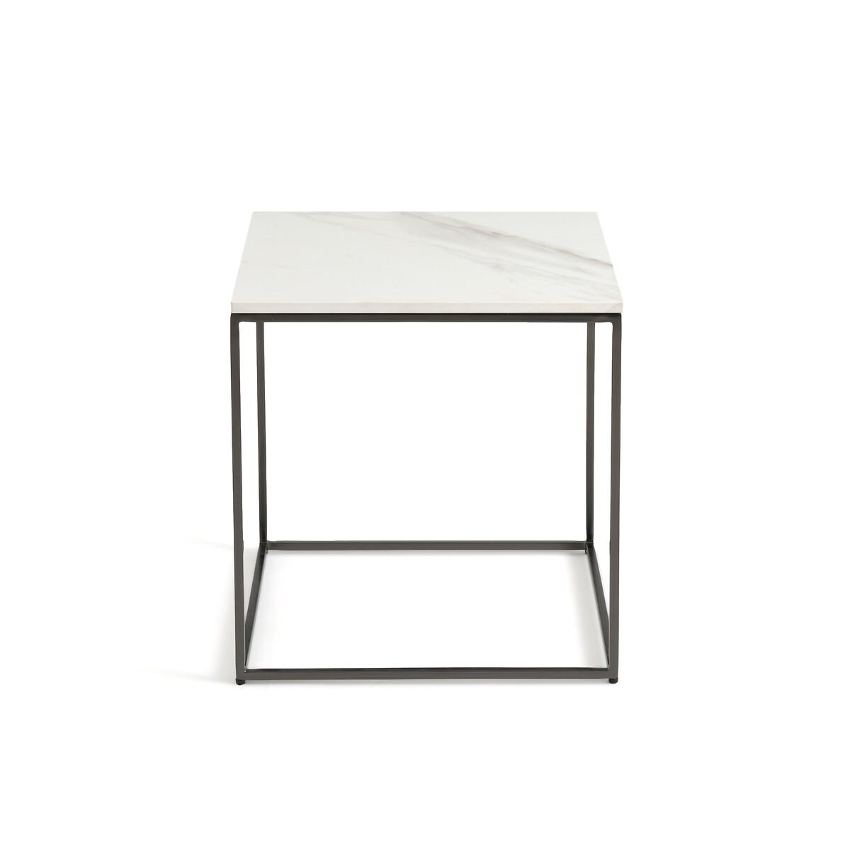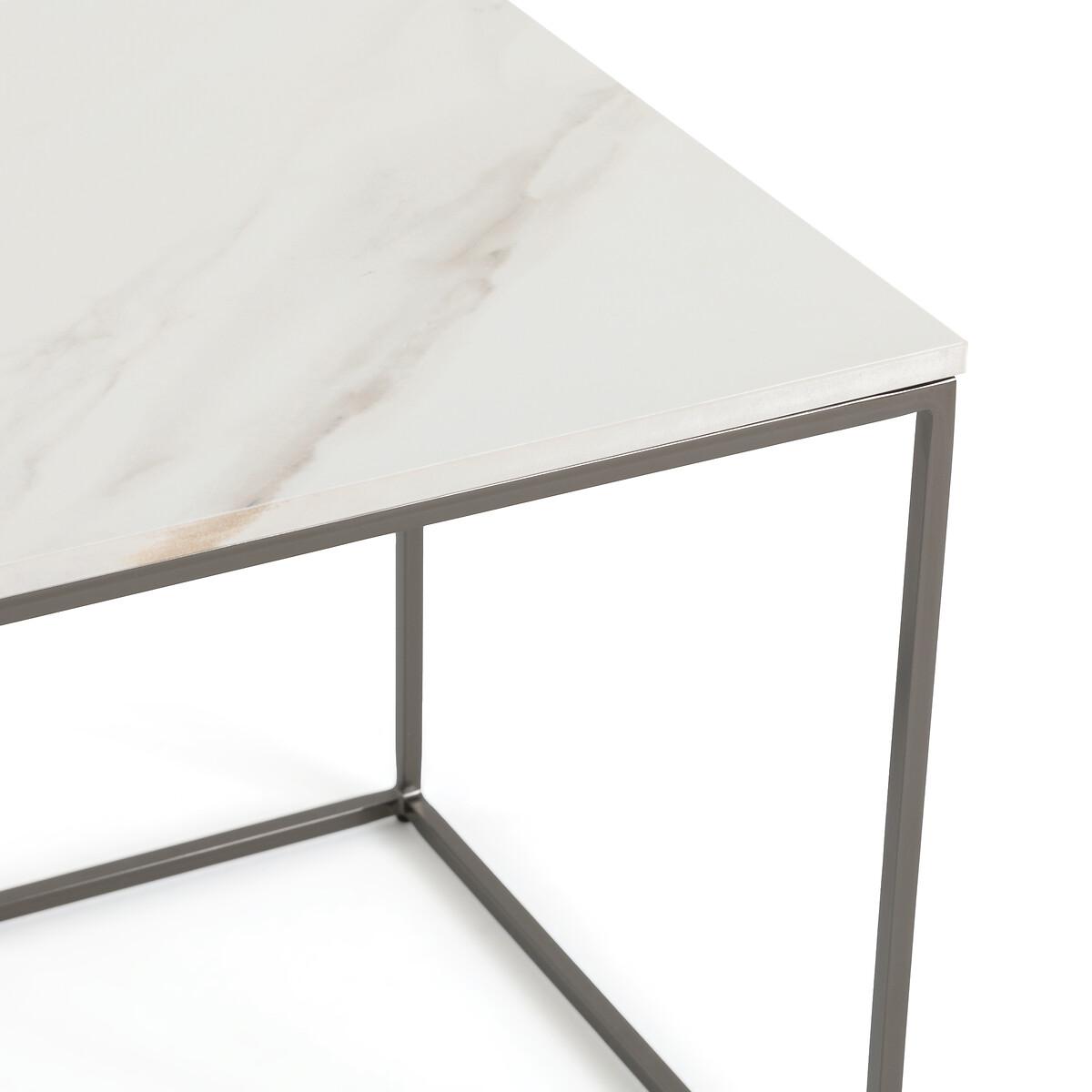 Mahaut side table. Elegance and simplicity combine in this design with a marble-effect ceramic top and a fine structure in blackened nickel-finish steel. An exclusive design signed by AMPM.