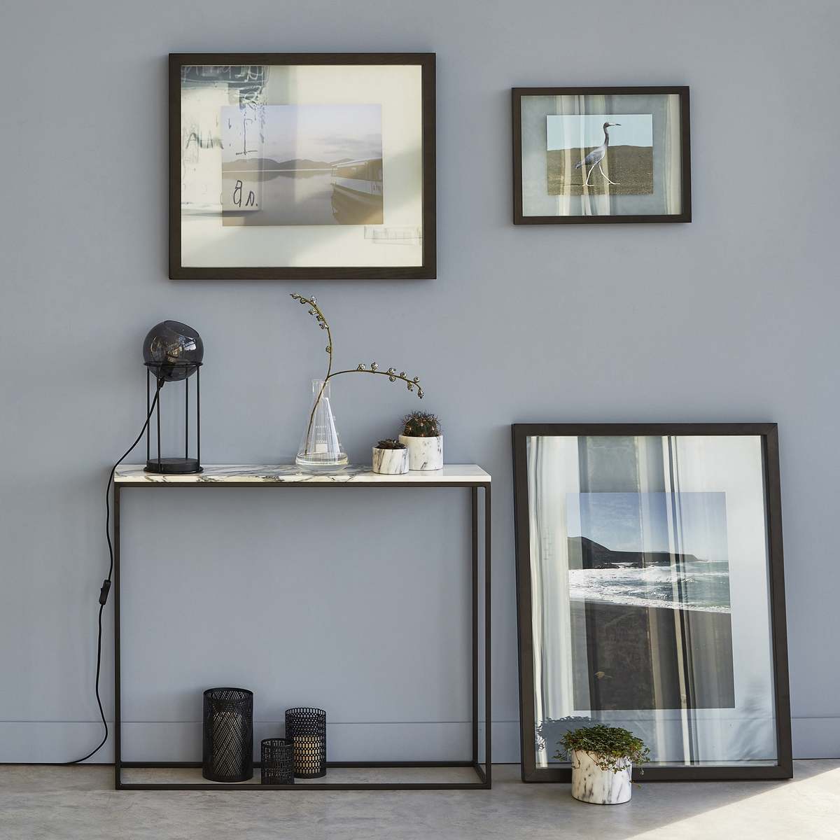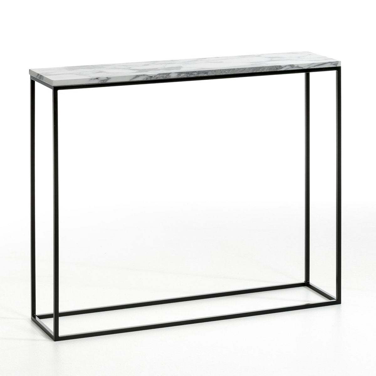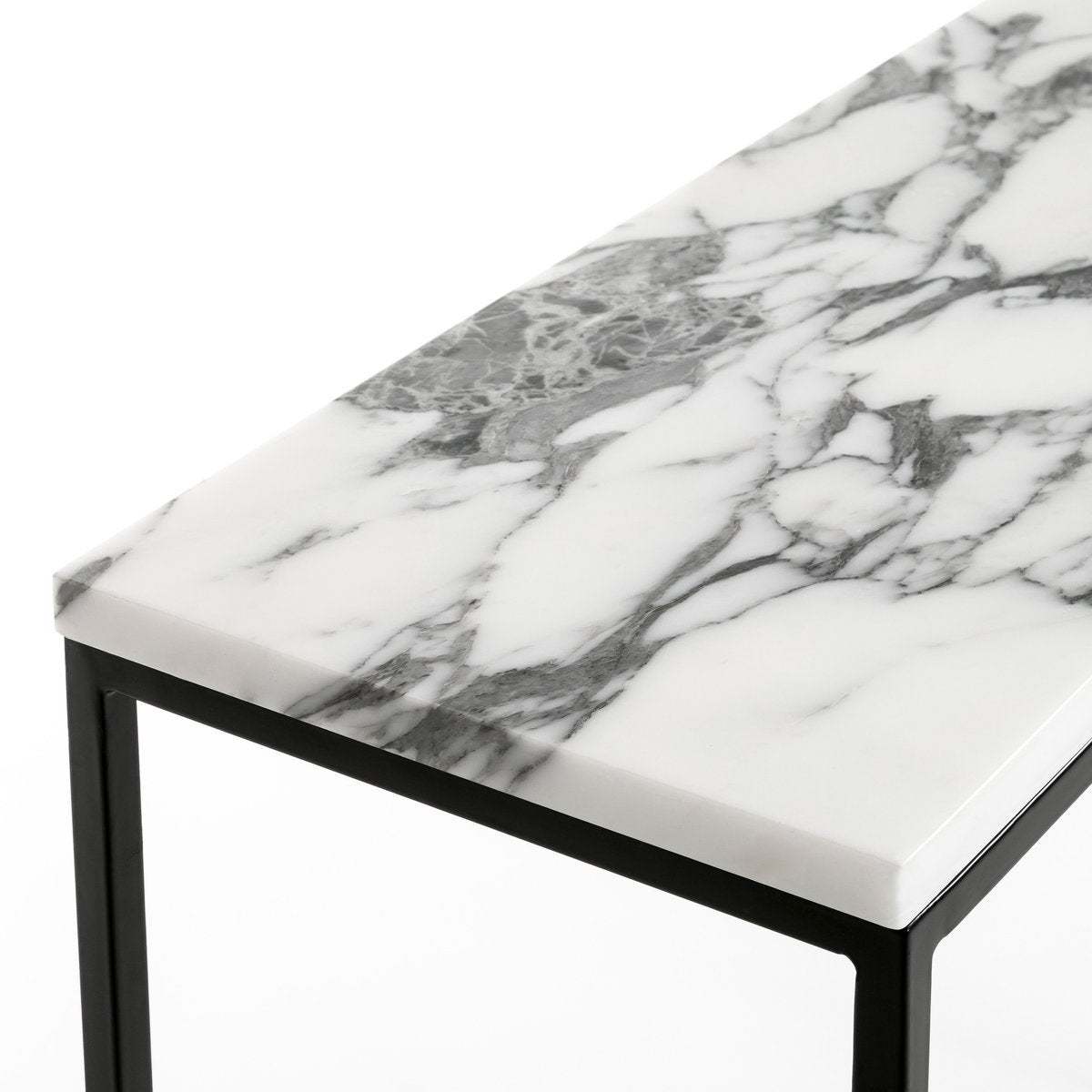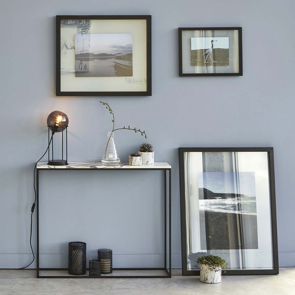 Striking and eye-catching, marble never fails to steal the show. In a sleek and slimline design, this console table will add the wow factor to wherever it's placed.Ideal for a hallway or entrance, the MAHAUT is designed with a sleek black frame and unique marble top, so each piece is a one-off for your home. Top with equally tasteful accessories, but keep them minimal to really showcase the beautiful marble markings.