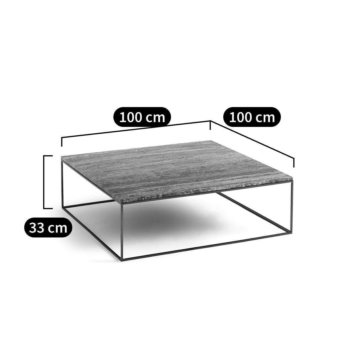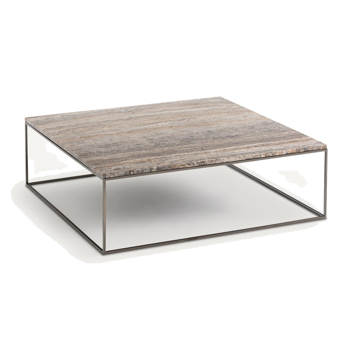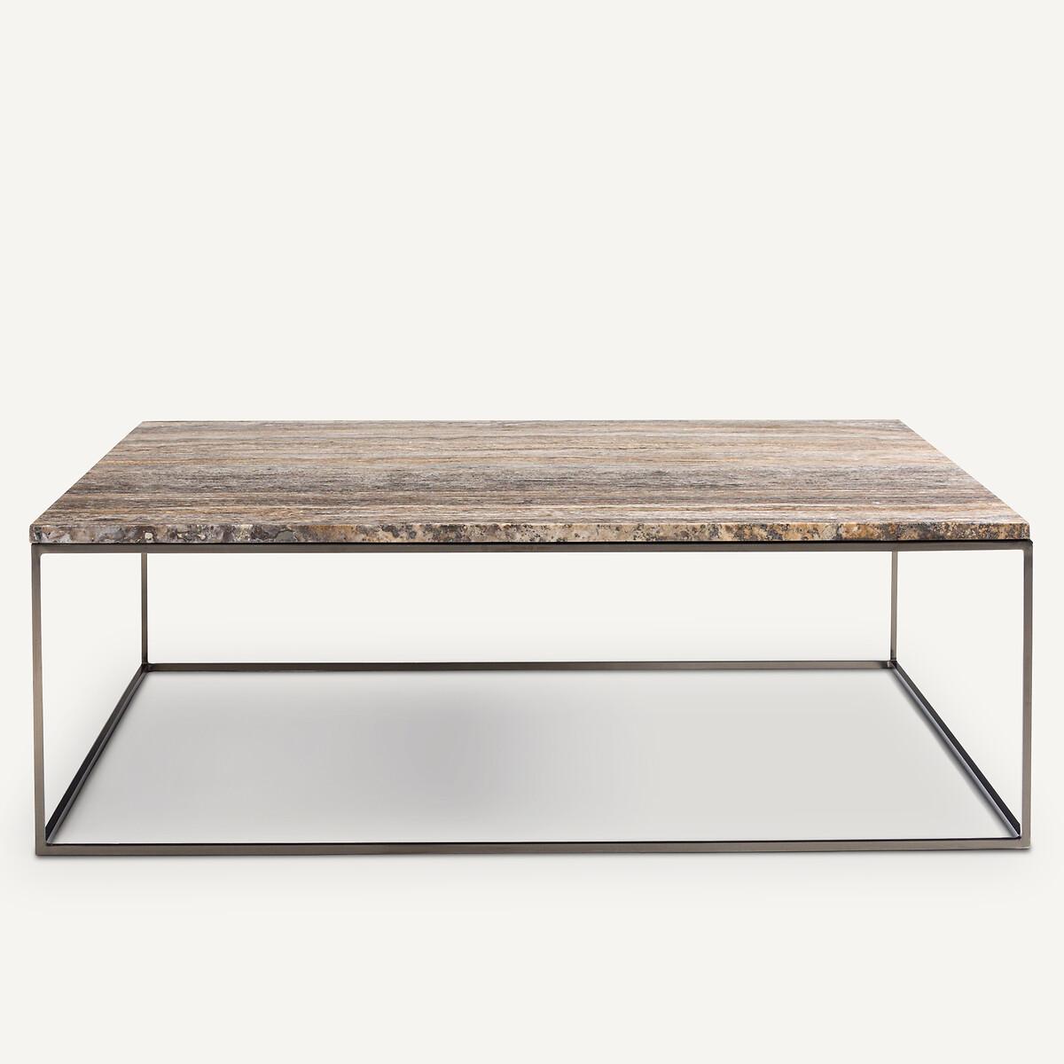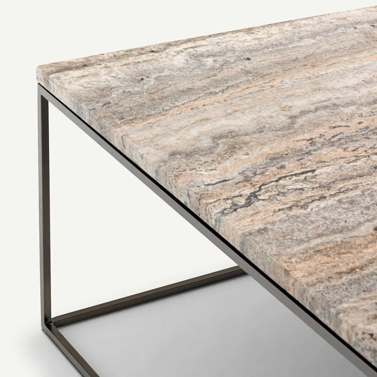 Mahaut coffee table. Elegance and simplicity. The combination of a grey travertine top and a blackened nickel finish metal structure. A generous and elegant coffee table.