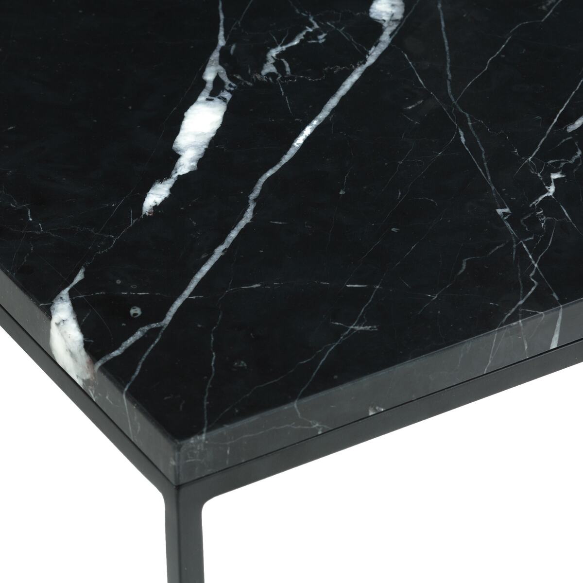 Mahaut coffee table. Elegance and simplicity combine to form this sleek, square-edged piece, the solid marble top creates a stunning contrast with its ultra fine metallic frame.
