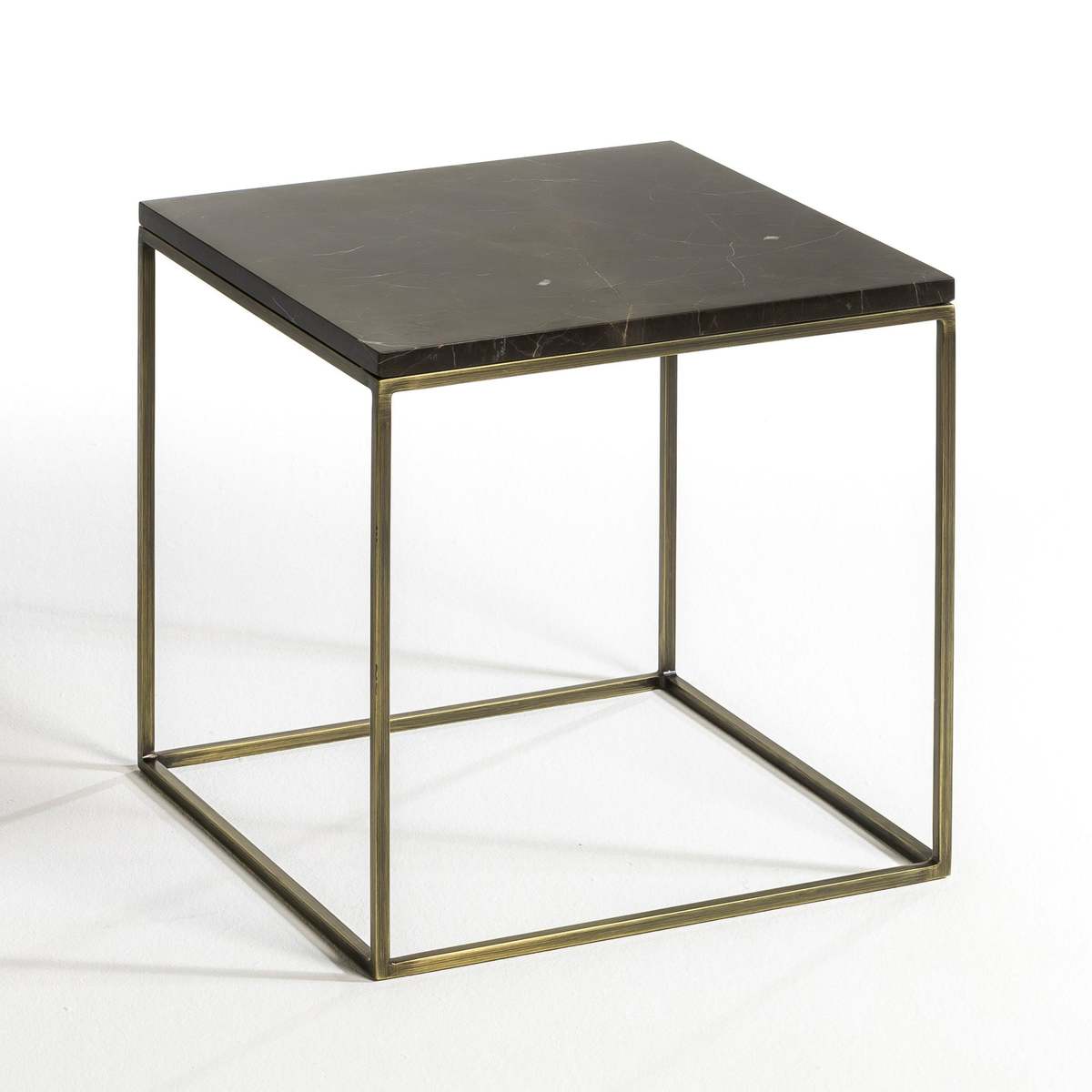 Elegance and simplicity with the combination of a marble top, a noble, soft and solid stone, and a very fine aged brass effect metal structure.