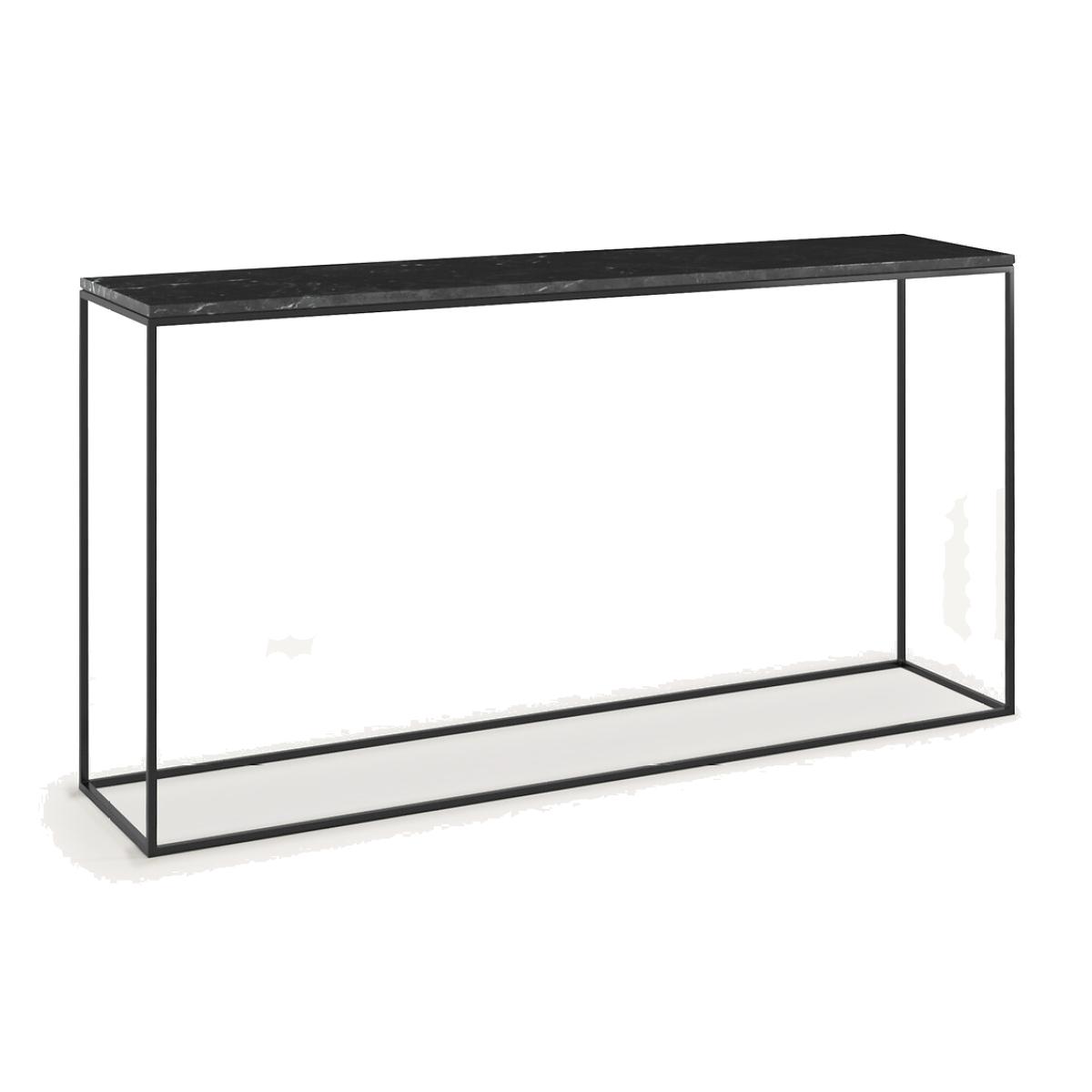 The Mahaut XL console table. The elegance of marble and the modern feel of metal combine in the XL version of the popular Mahaut console table. Product Details • Tabletop in black marble (18mm thick). each piece is unique so the marbled effect may vary • Metal frame with epoxy finish. Care Advice. Marble is a naturally porous material that is sensitive to stains. To preserve all its qualities, follow the advice below. :• Avoid placing hot objects on the surface, use coasters and trivets. • Immediately wipe up any spilled liquid with a white cloth dipped in lukewarm water and wrung out. • Maintain your marble regularly with products from our partner Akemi® • We advise you to use Akemi® Crystal Clean Spray for your daily maintenance and, at least once a month, Akemi® Triple Effect Spray to clean and protect your marble surface.. This will reinforce the initial treatment and its water-repellent effect will prevent dirt from easily penetrating the stone.. • If you want to use products other than those of our partner Akemi®, choose only p. H-neutral cleaners. • Acid, anti-limescale or bleach-based products are not recommended. Dimensions • Width 140cm • H75cm • Depth 33cm. Home delivery:Available for home delivery. Note! Please check that all access points are large enough to accommodate your delivery (doors, stairs, lifts).Dimensions and weight of parcel2 parcels • L148 x H81 x D40.5cm - 17.5kg • L151 x H44 x D15cm - 39kg