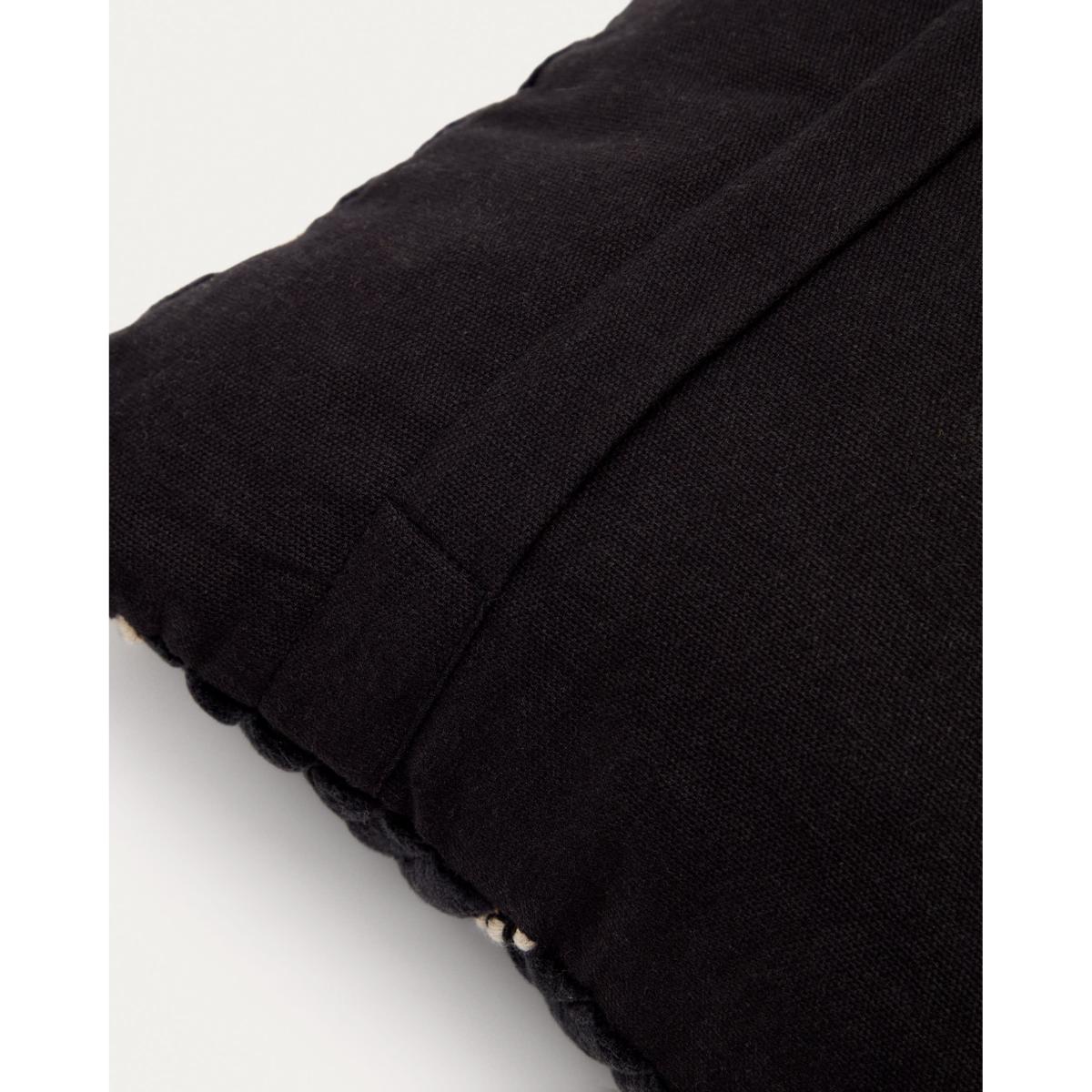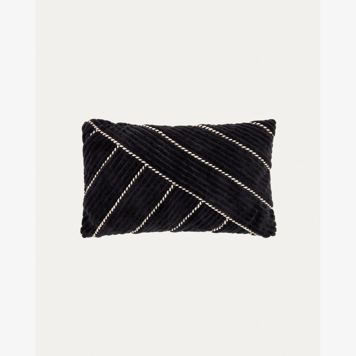 Maik black cotton velvet cushion cover with contrasting white ribbon detail 30 x 50 cm