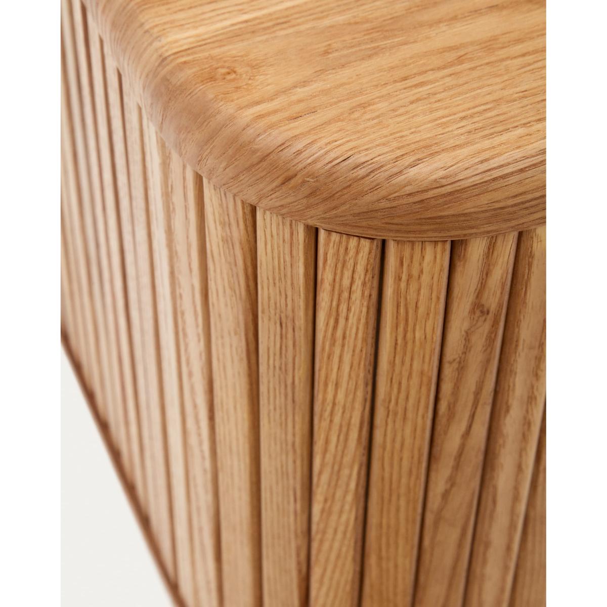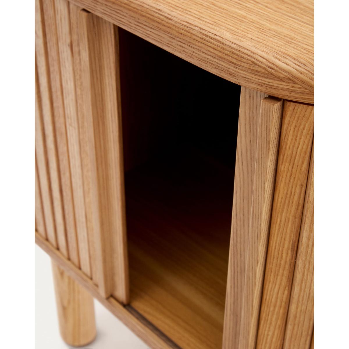 The Kave Home team has created the Mailen collection, with a contemporary design of rounded shapes, made of ash veneer and sliding wooden slatted doors that make it an authentic star.