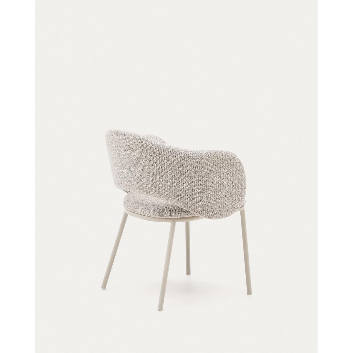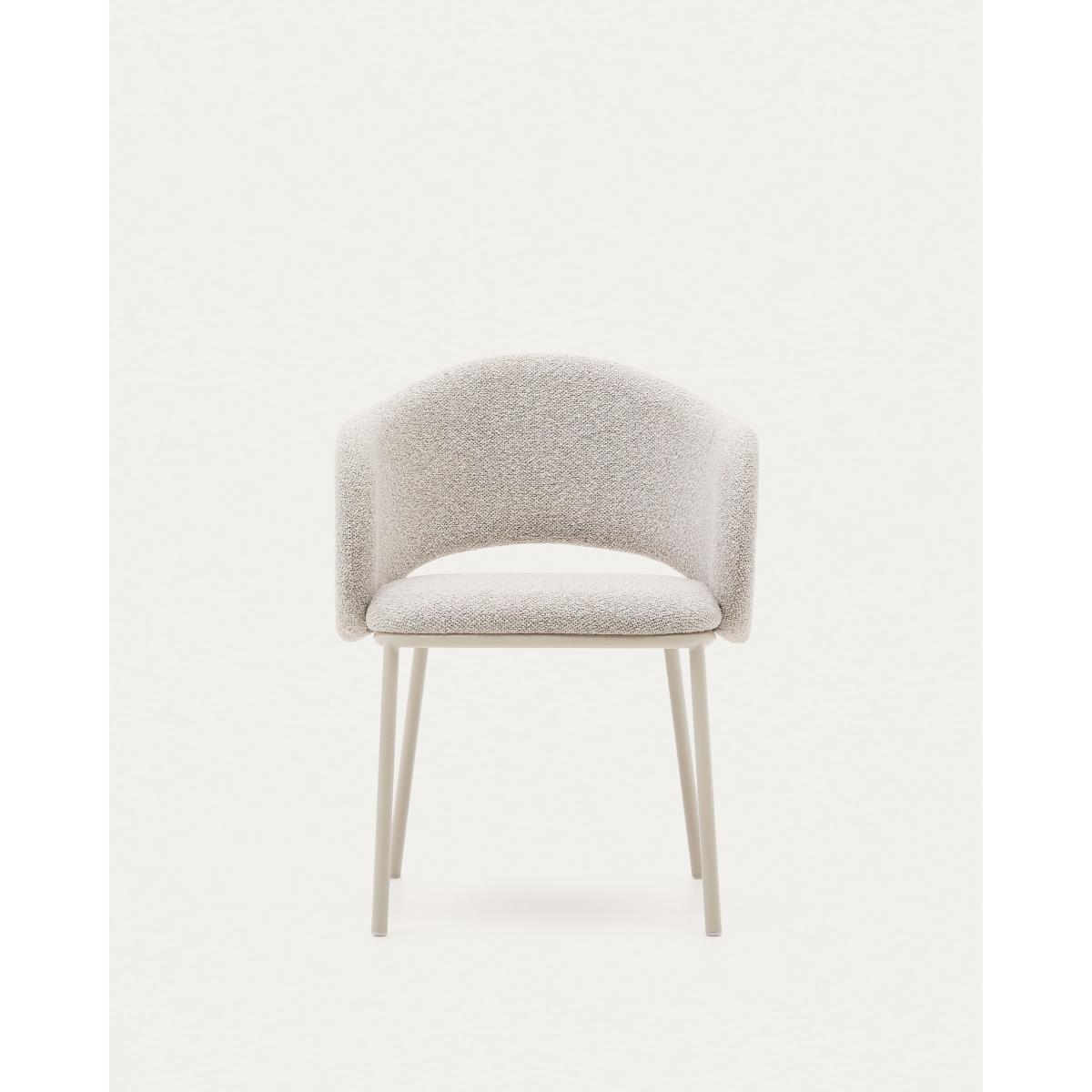 Maina chair in thick beige chenille and steel legs in a beige finish, FSC Mix Credit