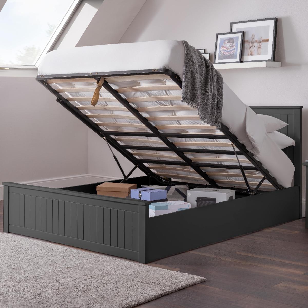 Dimensions:W145cm x D204cm x H98cm Features we love New England style panelling. Ottoman lift storage. Exquisite dove grey lacquer. Matches Julian Bowen's beautiful Maine bedroom furniture range. 12 month product guarantee. All about me The Maine Ottoman Bed will bring a touch of elegance to your bedroom. With a classic aesthetic, this bed can suit various decorative styles and create a calm, peaceful environment for a good night's sleep. The ottoman lifts easily and provides a large amount of storage – perfect for bedding and other items.