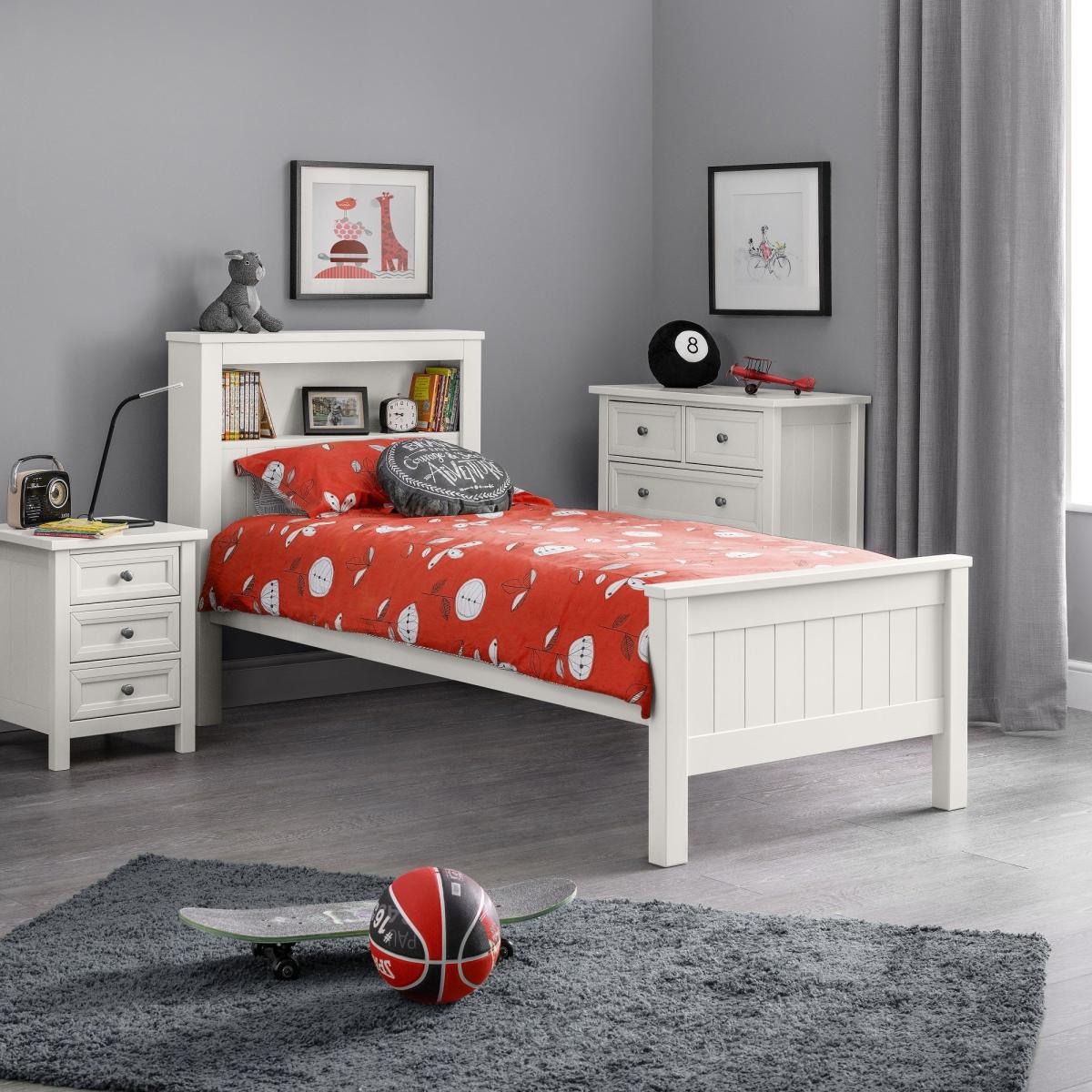 * Lacquered finish* Shelf within headboard for book storage Sleep and read in style on the Maine Bookcase Bed! With its exquisite anthracite lacquer finish and handy shelf within the headboard, this bed is the perfect addition to any book lover's bedroom. Part of the Julian Bowen Maine Bedroom range, it's strong and durable, just like your love of literature.