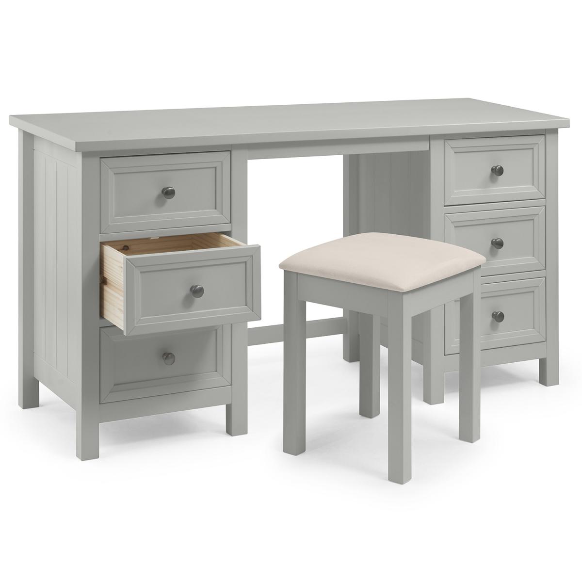 Maine is an elegant New England style range of bedroom furniture. The combination of exquisite surf white lacquered finish with characteristic side panelling and detailed chamfered cabinetry makes for a soothing and refined aesthetic with timeless appeal, while delicate pewter handles add the perfect finishing touch. The Maine Dressing Stool has an upholstered padded seat, the perfect match for the Maine Dressing Table.