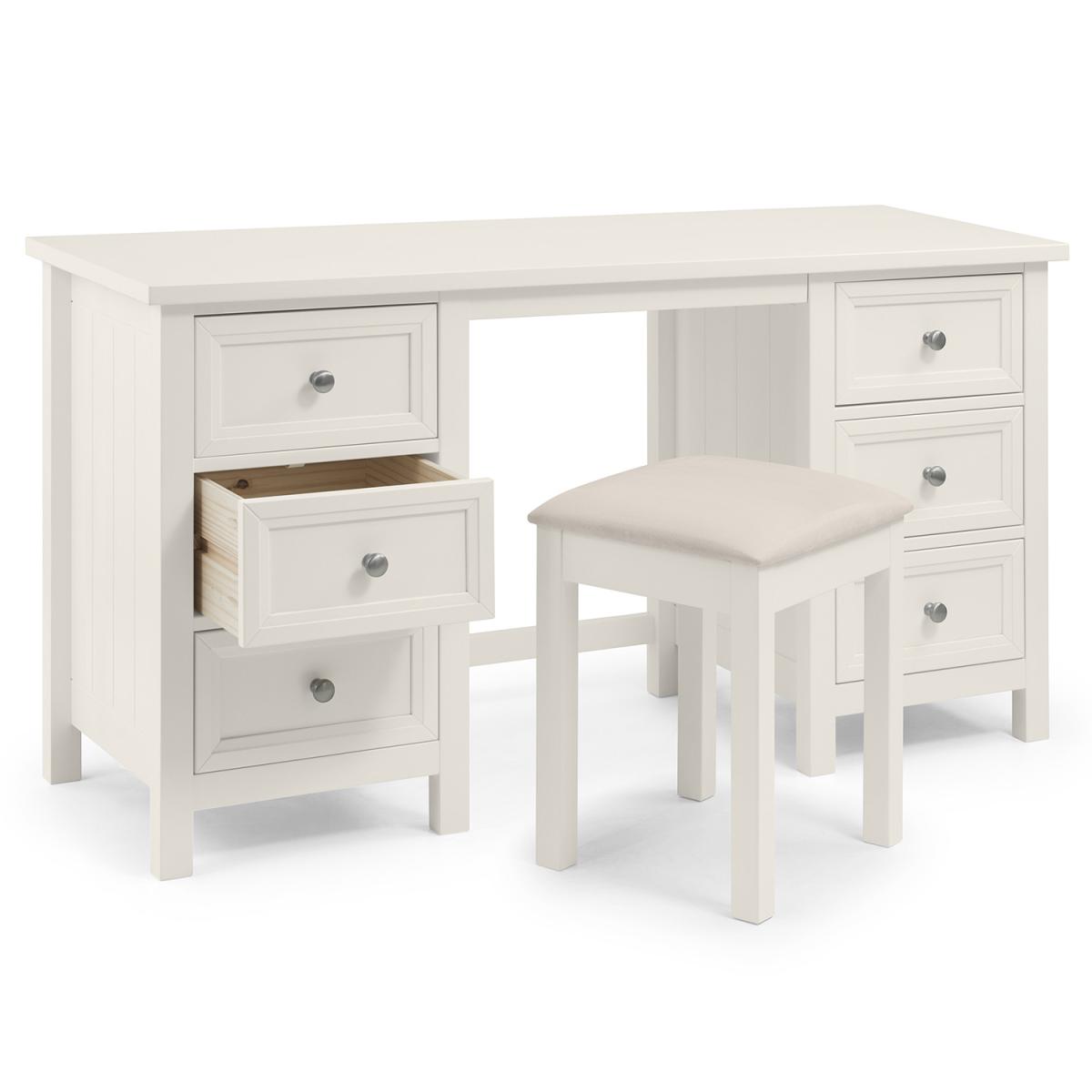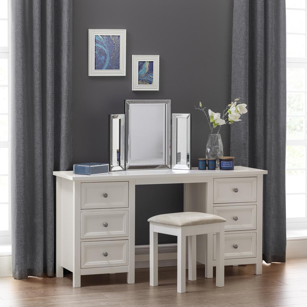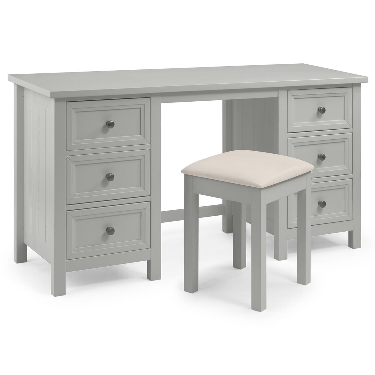 Maine is an elegant New England style range of bedroom furniture. The combination of exquisite anthracite lacquered finish with characteristic side panelling and detailed chamfered cabinetry makes for a soothing and refined aesthetic with timeless appeal, while delicate pewter handles add the perfect finishing touch. The Maine Dressing Tableoffers copious amounts of storage with 6 drawers. The perfect match for the Maine Dressing Stool.