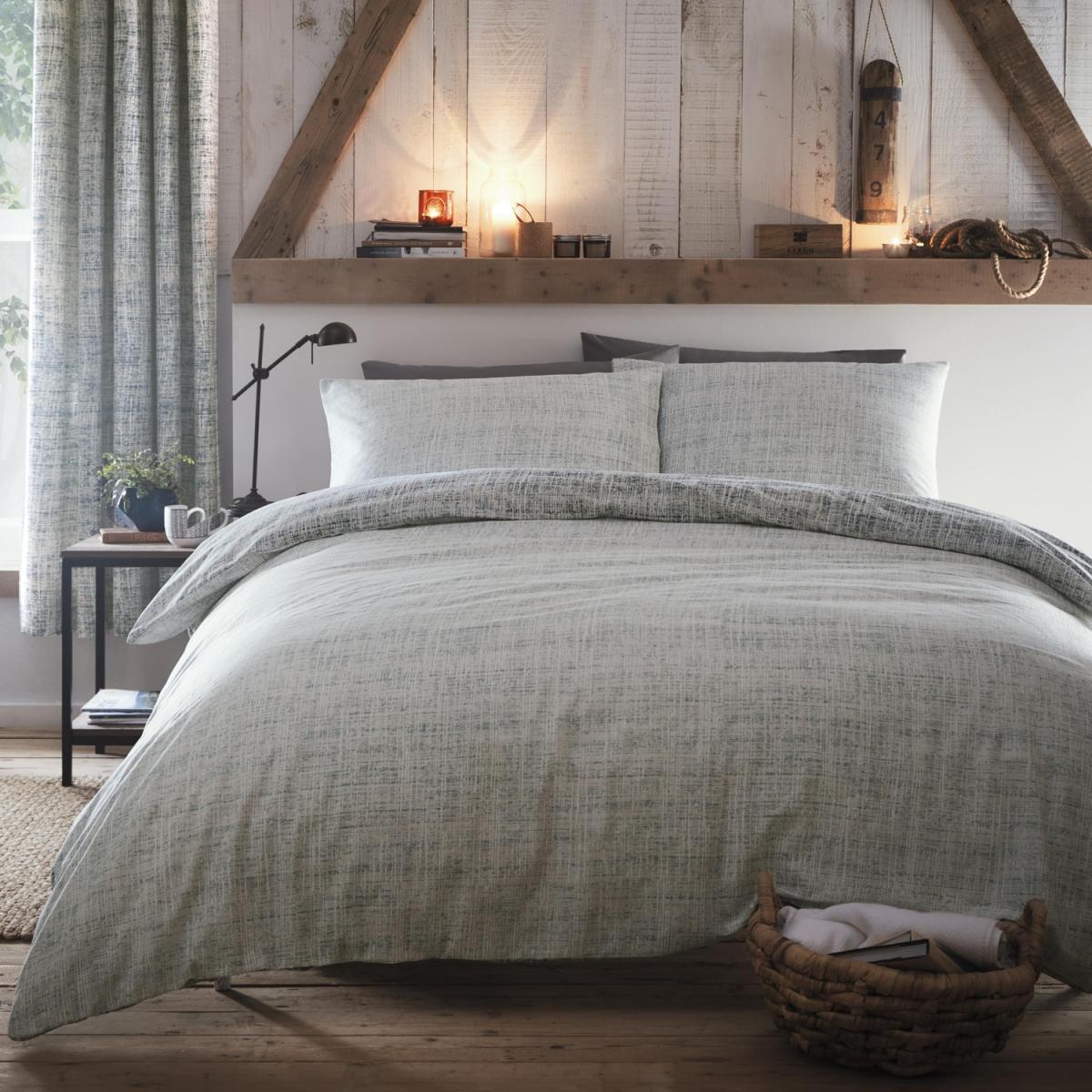 Offering our most versatile design, Maine provides a touch of colour and a loose woven printed texture as the perfect backdrop to any bedroom. Layer up with a multitude of textured throws and cushions for the ultimate cosy nest or keep simple and paired back for complete serenity. Available in shades of blue and green.