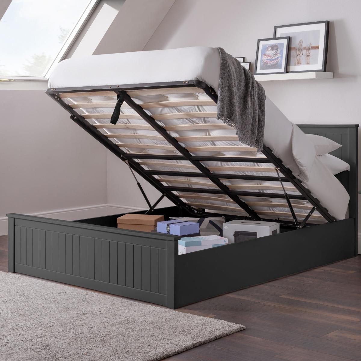 * New England style panelling* Ottoman lift storage for maximum functionality* Matches Julian Bowen's beautiful Maine bedroom furniture range You don't have to live in New England to appreciate the style and functionality of our Maine Ottoman Bed. The exquisite lacquer and beautiful panelling will give your bedroom that classic coastal vibe. And with its lift-up ottoman storage feature, you'll never have to worry about running out of space. Perfect for those who want to maximize their storage without sacrificing style.