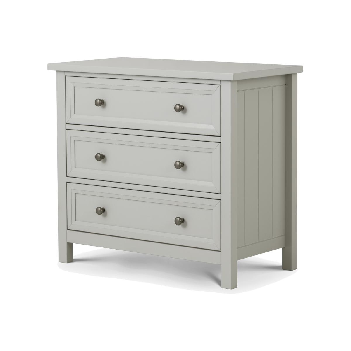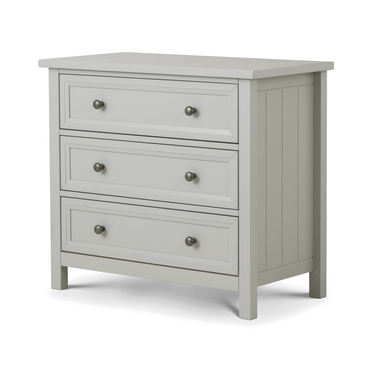 Combining style, elegance and practicality, the gorgeous Julian Bowen Maine Three Drawer Chest is beautifully crafted with a painted and lacquered finish and panelled drawer fronts to give you a spacious storage solution for everyday use. The durable and versatile unit is perfect for housing important paperwork and folders in your office, holding stationery in your craft room, or storing away clothing in the bedroom. Adorn the top with a lamp, decorative ornament or seasonal blooms to complete the stunning appearance. The simple drawers are sturdy and robust and feature wooden runners. The pewter handles are rounded and decorative, adding to the sophisticated exterior and adding depth and character to the simple design. The minimalist style matches both modern and traditional interior decor, turning your house into a stylish home you can be proud of.