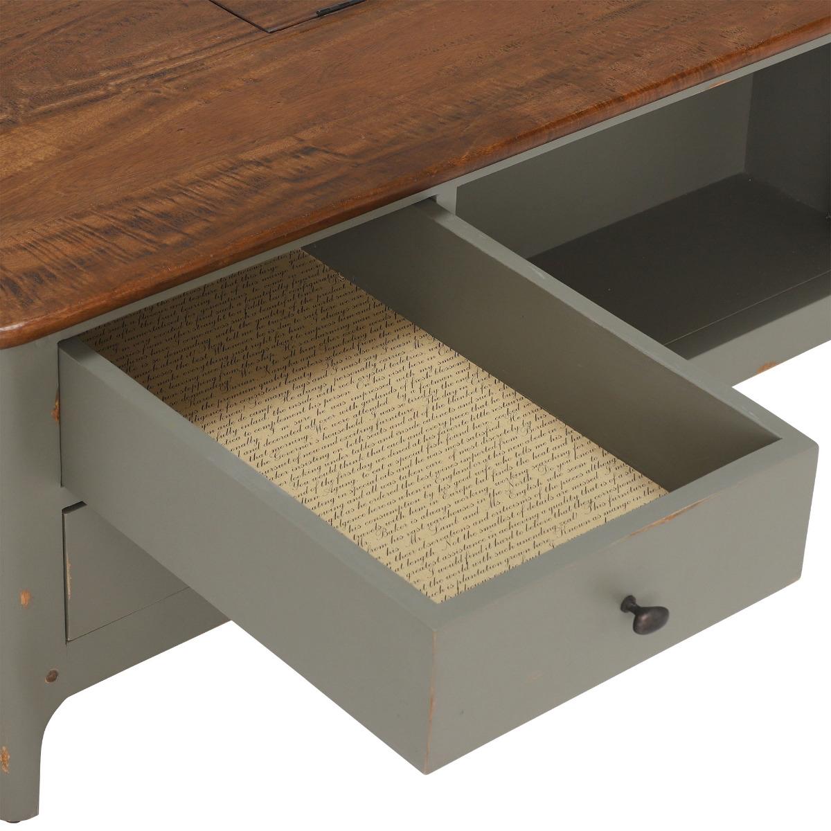 Design. Boasting. Character and charm. , The Maison 2 Drawer Coffee Table, Albany and Moss Grey. Pairs perfectly with rustical styles. The warm mango wood. Painted. In a distressed. Earthy grey creates a beautiful shabby chic. Finish. This coffee table features 2 delicately detailed drawers which are accessible from both front and back making it practic. Al. As well as extremely beautiful. The open shelf also creates a space for more accessories, because you can never have enough scented. Candles. And diffusers,. Ri. Ght?.