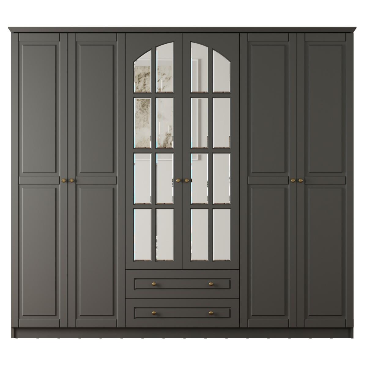 MASION represents the unique blend of modern furniture with the country furniture. With cornice detailing, bronze handles and anthracite grey finish this panelled design is characterful. Combining a large hanging space with shelving and two deep drawers this wardrobe is perfect storage solution for all your clothes and accessories. The glass mirrors on the doors creates a dressing room atmosphere while reflecting light and space around your room. Material Membrane coated MDF board, finished with CNC process. Glass mirror, metal handles. Dimensions Width210cm,Height184cm,Depth52cm. Delivered flat packed in 6x Boxes. Total Gross Weight156.2kg.!!!IMPORTANT INFORMATION!! Due to the size and the weight of this item, it is shipped out flat packed with 2MA N White Glove Guaranteeed Next Day Delivery Service to your room of choice with PANTHER logistics. After placing your order you can book your delivery by following the email instructions from PANTHER Logistics. !! Once the item is dispatched from our warehouse , cancelation or change of delivery date is subject to 50 charge!! Please note that items can not be left in a safe place or with a neighbour. If you are not happy with this service please let us know before item is dispatched and we will send your item with a standard 2man 7-10 days delivery service instead of next day service.