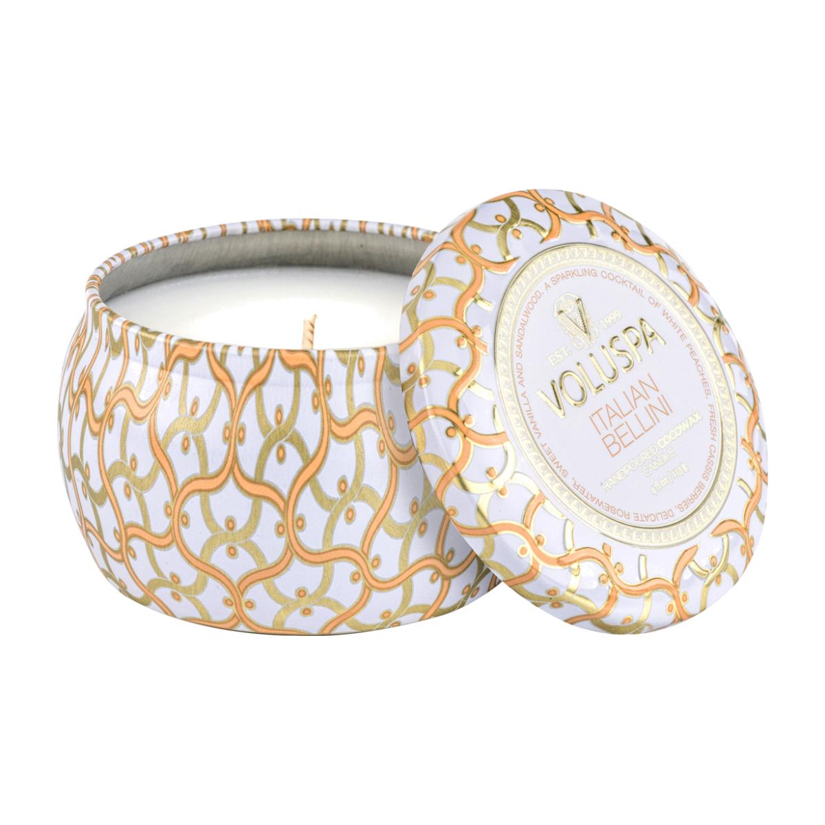 Voluspa Maison Blanc Mini Tin scented 25 hours Italian Bellini