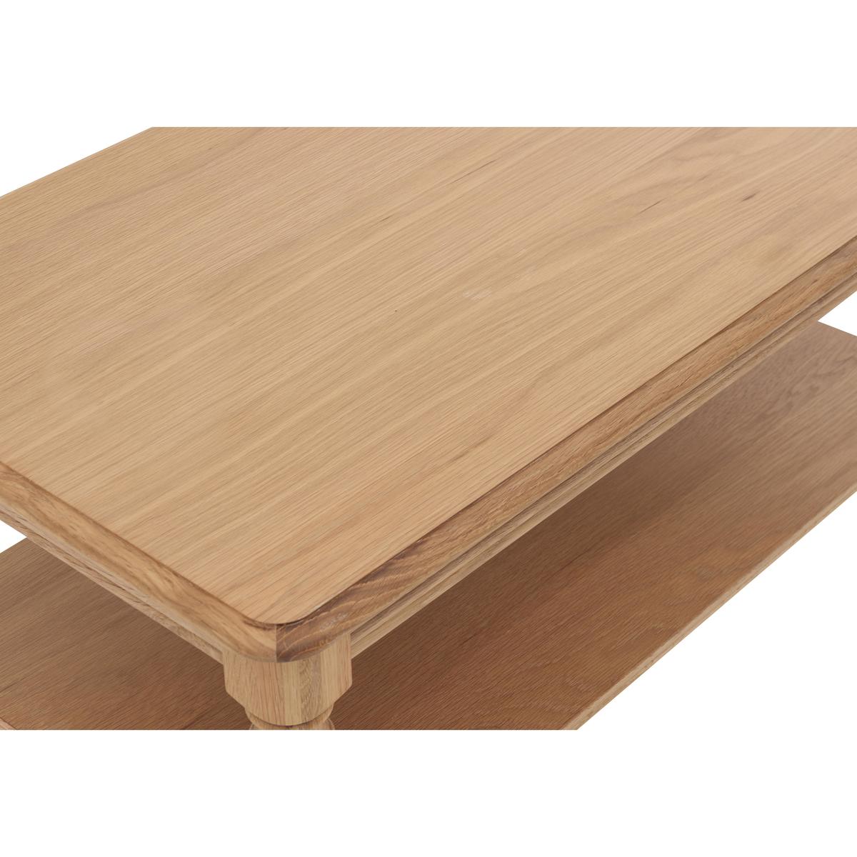 Stylishly combining elegant features with practical design, the Maison coffee table is a wonderfully well-made piece of furniture. Crafted from solid American white oak and oak veneer, this sturdy coffee table is generously sized and has a wealth of classic detailing that includes turned legs, overhanging top and subtle carvings. The contemporary oak finish ensures that this piece will find a home in both traditional and modern interiors, and the lower shelf makes it eminently functional for living room storage, too. The Maison coffee table is part of the Maison range of beautiful and elegant dining, storage and occasional pieces. Pair this table with the Maison console table or the Maison lamp table, or enjoy the same grandly elegant style in the dining room with the large Maison rectangular extending dining table. Did you know? Oak is natural with characterful knots and markings, every piece of furniture is unique.