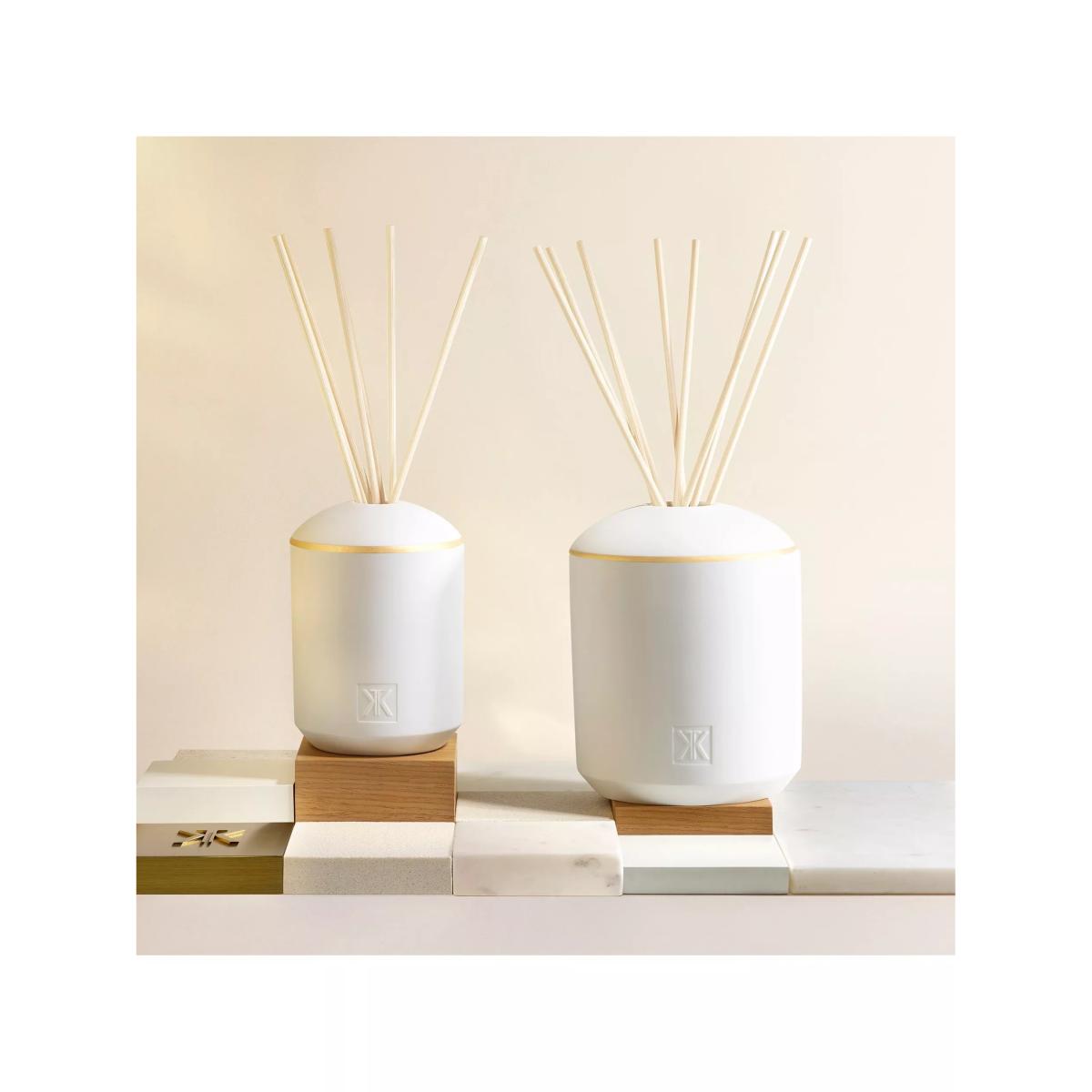 I love this diffuser for its understated elegance and sophisticated scent profile, making it suitable for a variety of interiors-from contemporary urban apartments to classic country homes. Its clean, minimalist design with subtle gold accents adds a touch of luxury without overwhelming a space. It works particularly well in living rooms, hallways, or even bedrooms where a gentle but refined fragrance can create a welcoming atmosphere. Practical styling tips include pairing it with neutral or natural textures-like linen or wood-to enhance its modern appeal, and placing it on a side table or shelf at eye level for maximum effect. This diffuser is a versatile piece that effortlessly elevates the ambiance while offering a stylish alternative to candles.