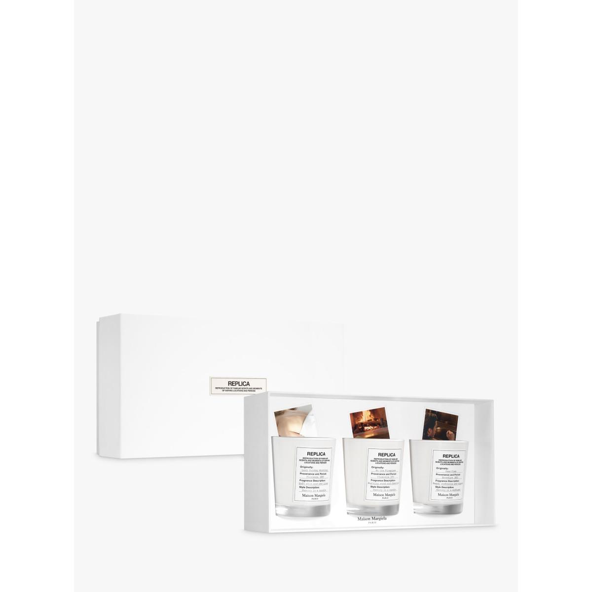 Reignite your memories with this 165g candle trio set from the REPLICA collection, designed to create three different scented atmospheres at home. In your bedroom, reignite the memory of a lazy Sunday morning, wrapped in white cotton sheets with Lazy Sunday Morning scented candle. In your living room reignite the memory of relaxing next to a warm, crackling fire on a winter's day with By the Fireplace scented candle. During a cocktail party, recall the refined and cosy atmosphere of an evening at a jazz club. Reignite your memories and transform the atmosphere of any room with the warm and spicy scent of a Jazz Club scented candle.