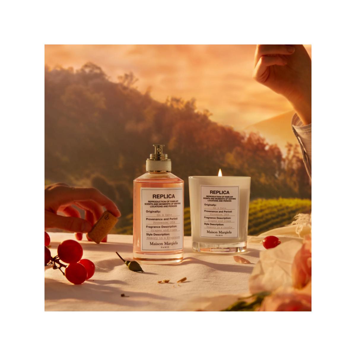 The memory of a late summer’s evening overlooking the vineyards of Provence. As the sun sets over the endless vines, a dreamlike golden hour sets the scene for the perfect date. Fill your home with sparkling fruity notes of Bergamot and Blackcurrant Liquor, contrasted with woody Patchouli and luminous Rose. Smells like sweet grapes, wild roses, and sun-soaked earth. From Maison Margiela’s Replica collection: signature scents inspired by memories. If you love the candle, why not try the original On a Date perfume from Maison Margiela?