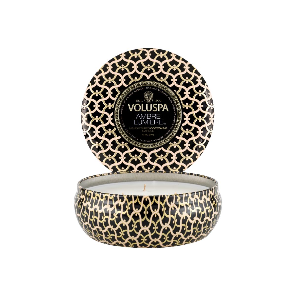 Voluspa Maison Noir 3-wick Tin scented 40 hours Ambre Lumiere