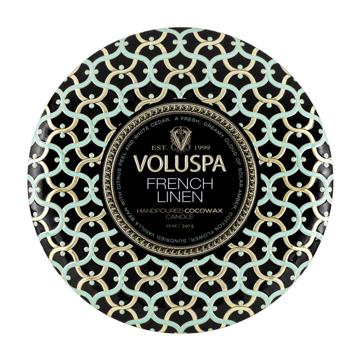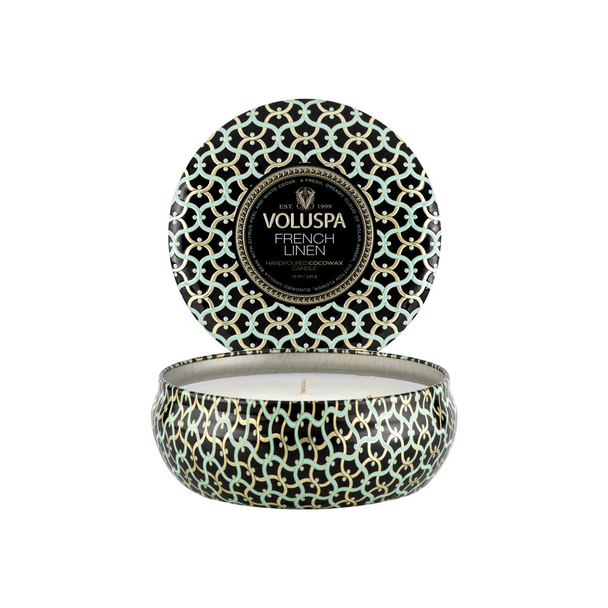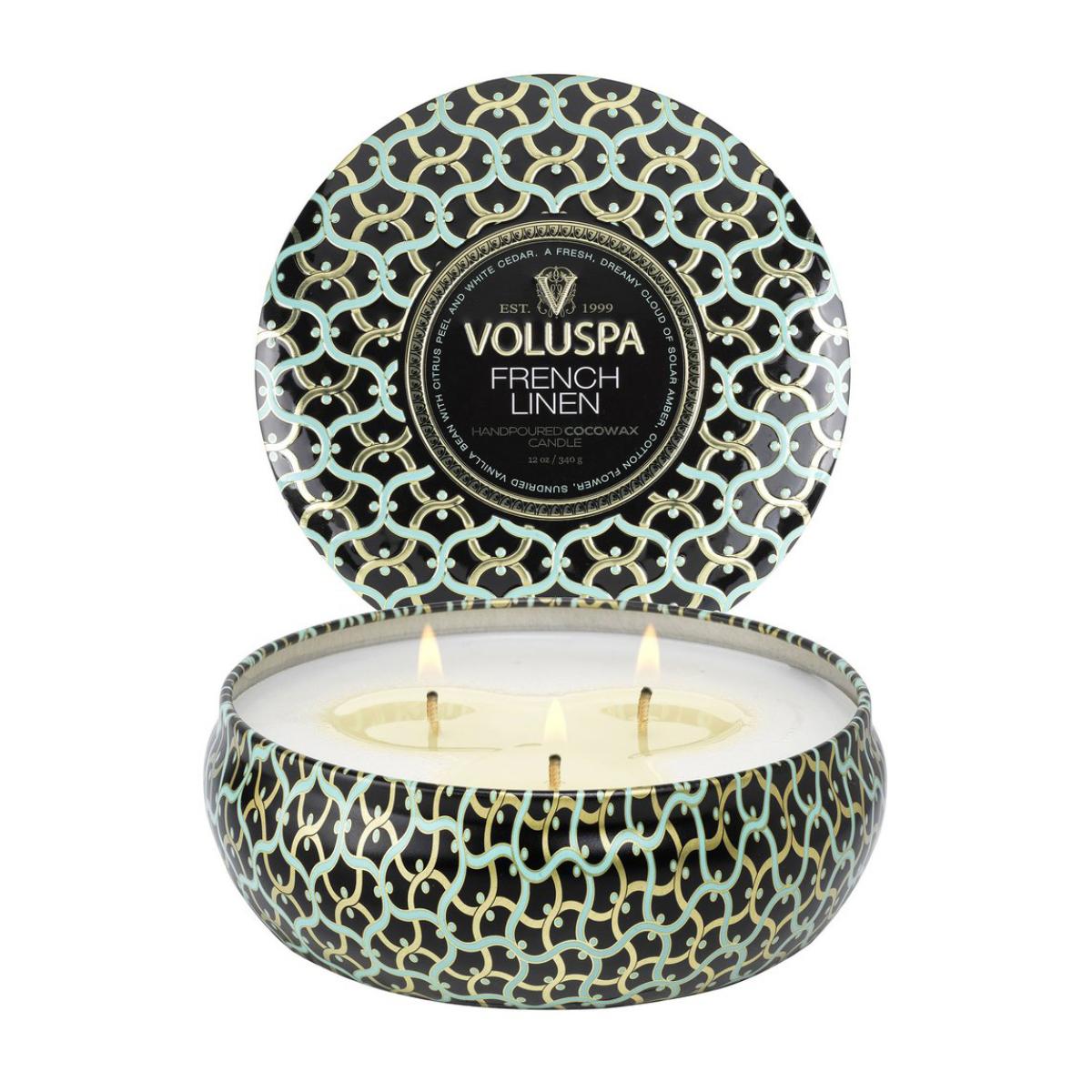 Voluspa Maison Noir 3-wick Tin scented 40 hours French Linen