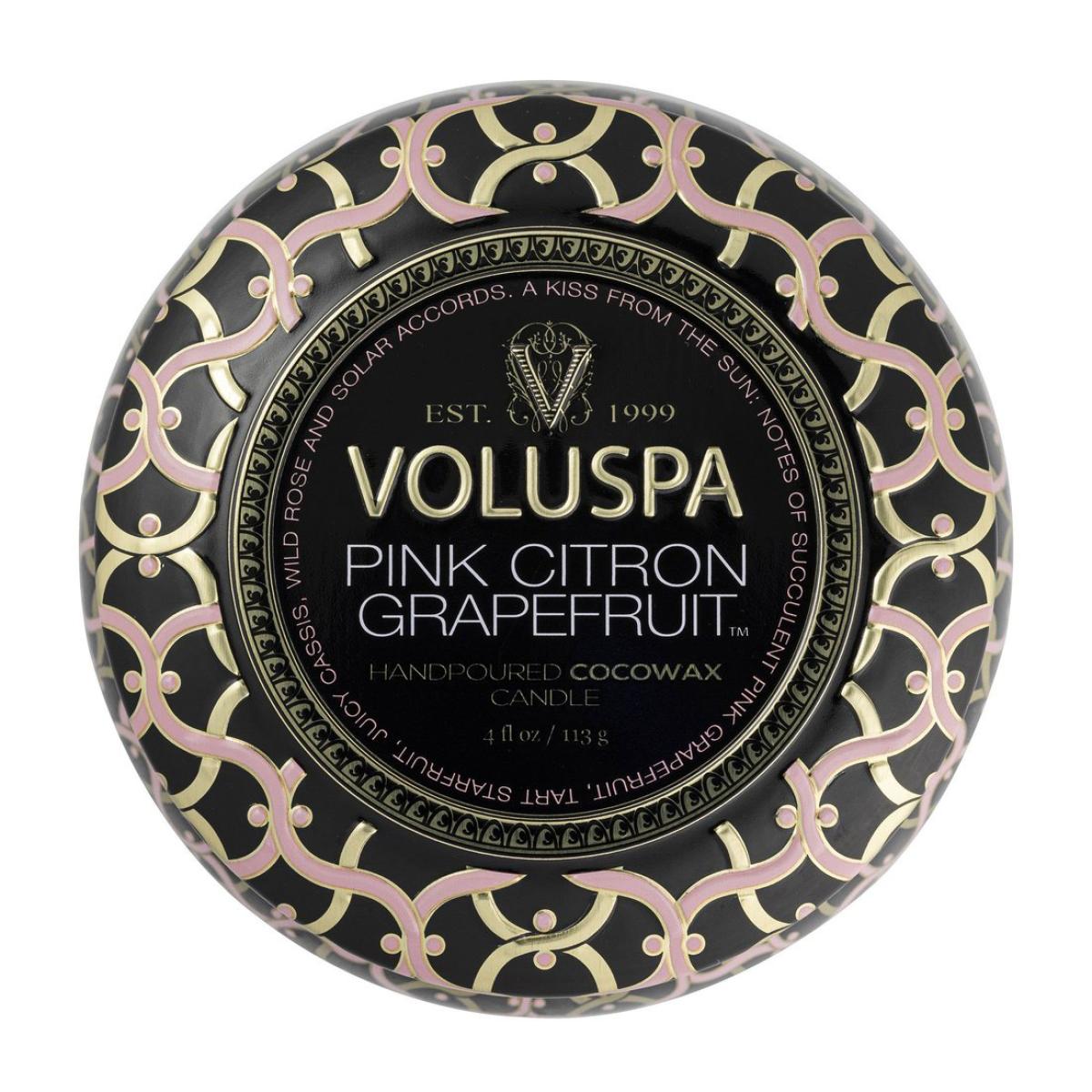 Voluspa Maison Noir Mini Tin scented 25 hours Pink Citron Grapefruit