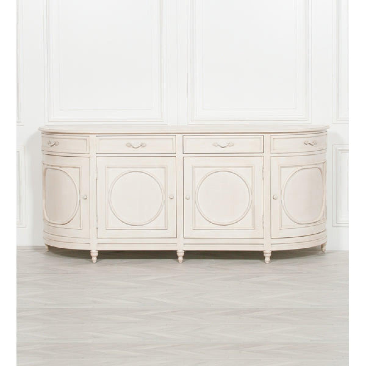 Luxurious pieces that combine stunning aesthetics with ample storage are few and far between. Don’t compromise on practicality or style. This cream Maison Reproductions Aged Sideboard has an elegantly aged finish and will increase the glamour quotient in your lounge, dining room, hallway or bedroom. The multiple cupboards, shelves and drawers are deep and roomy and can provide a home for countless household items that need to be accessed quickly and easily. It can tone perfectly with a neutral interior or provide a dazzling contrast to darker and brighter hues. Its dimensions are height 91cm, width 209cm and depth 53cm.