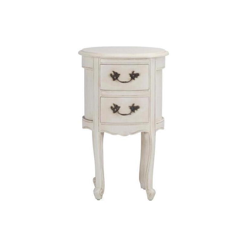 Frame your bed with this luxury bedside table. With two drawers, our aged oval side table is a must-have for any bedroom setting. Perfect for a lamp to provide light for a cosy evening reading in bed or to store those little bits that you can't go without, this bedside table is so much more than just a convenient surface. This aged oval side table has traditional vintage styling that will make it an eye catching feature in any room and bring an element of sophistication to any interior. The table is 67cm high, 41 cm wide, and 31 cm deep.
