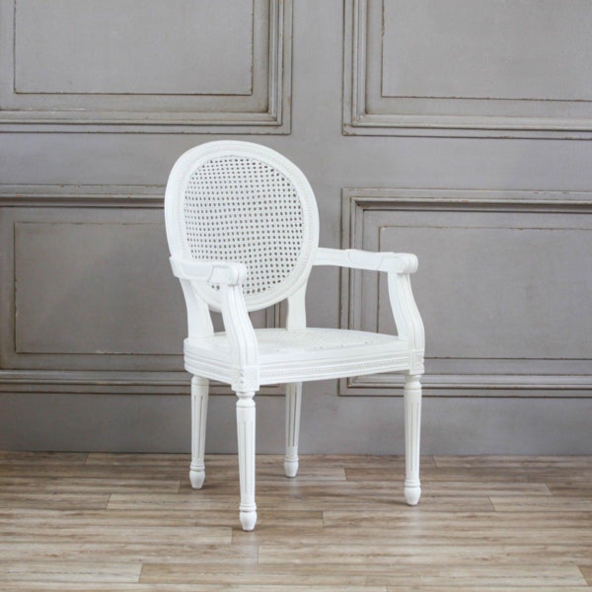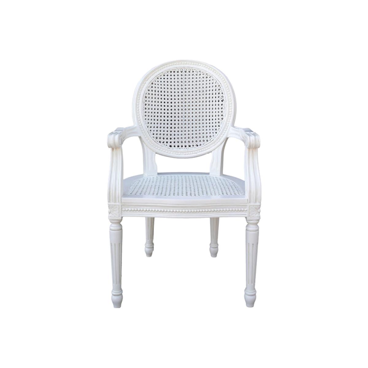 Add a touch of vintage French charm to your home with the Maison Reproductions Chateau rattan armchair. Drawing inspiration from traditional Louis XVI dining chairs, the Chateau is a classy armchair with a solid wood frame and a rattan back and seat. Painted white and featuring intricate carving and elegantly tapered legs, the Chateau rattan armchair is a lovingly crafted piece of furniture that exudes a shabby chic feel. Measuring 92cm in height, 49 cm in width and with an arm height of 65cm, the Chateau rattan armchair from Maison Reproductions will make a regal statement in your dining room or bedroom.